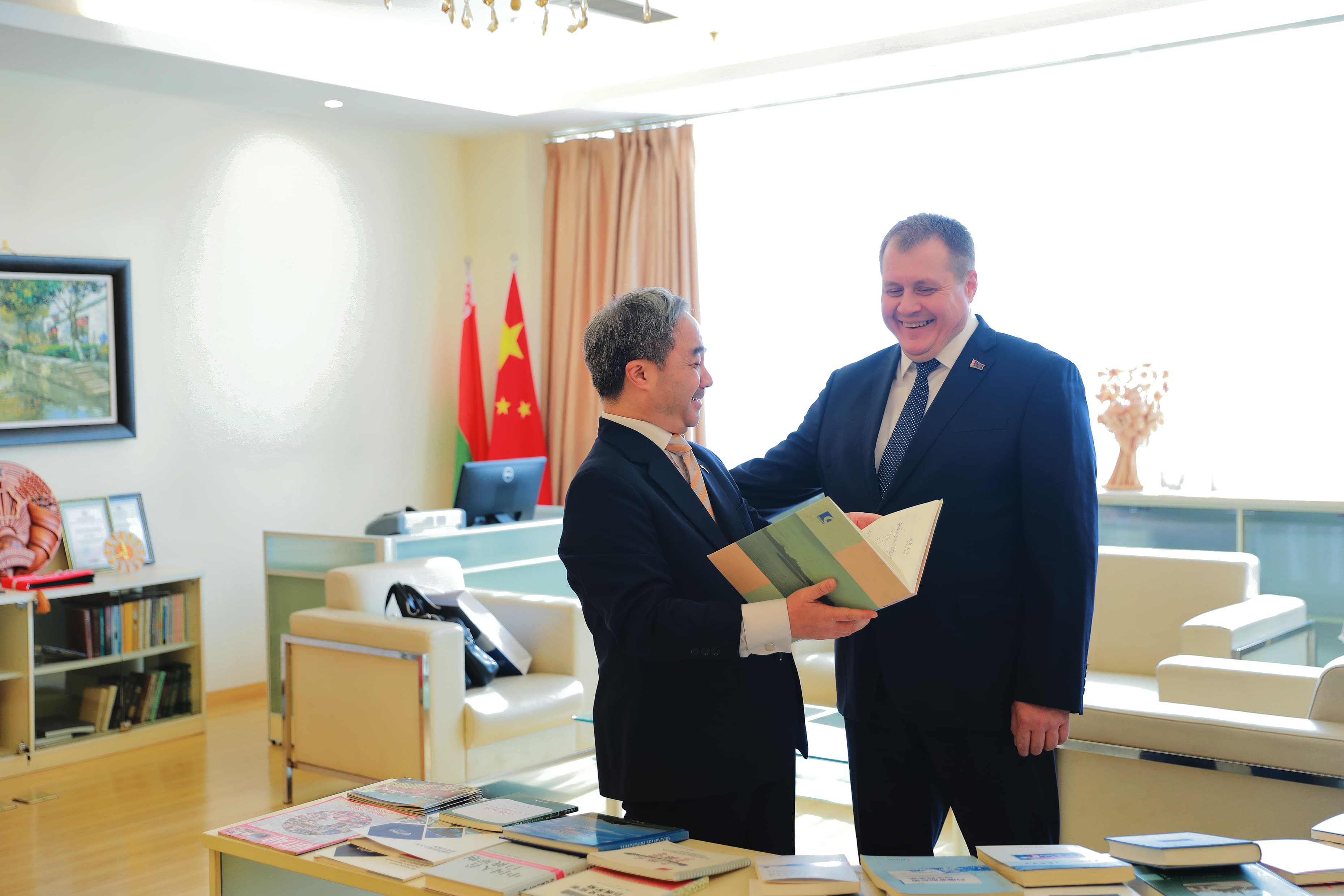 来宾还参观了我校白俄罗斯研究中心。白俄罗斯中心主任贝文力向来宾详细介绍了白俄罗斯中心与白俄罗斯高校及科研机构之间的学术交流及合作情况,巴哈诺维奇对我校白俄罗斯中心在两国教育文化交流中所做的贡献给予充分肯定。