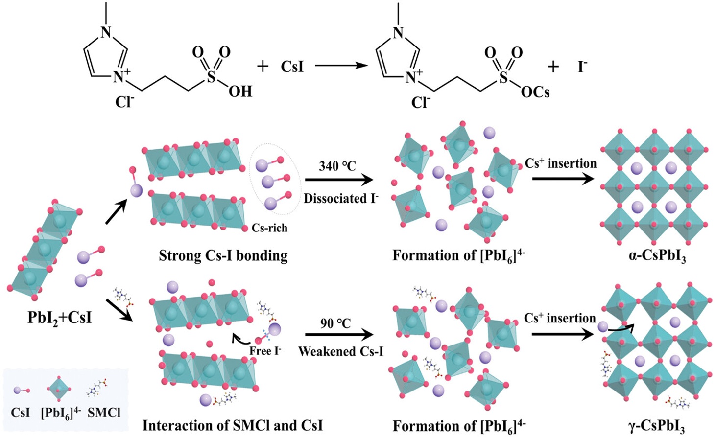 Cs-I弱化策略实现CsPbI3低温结晶示意图