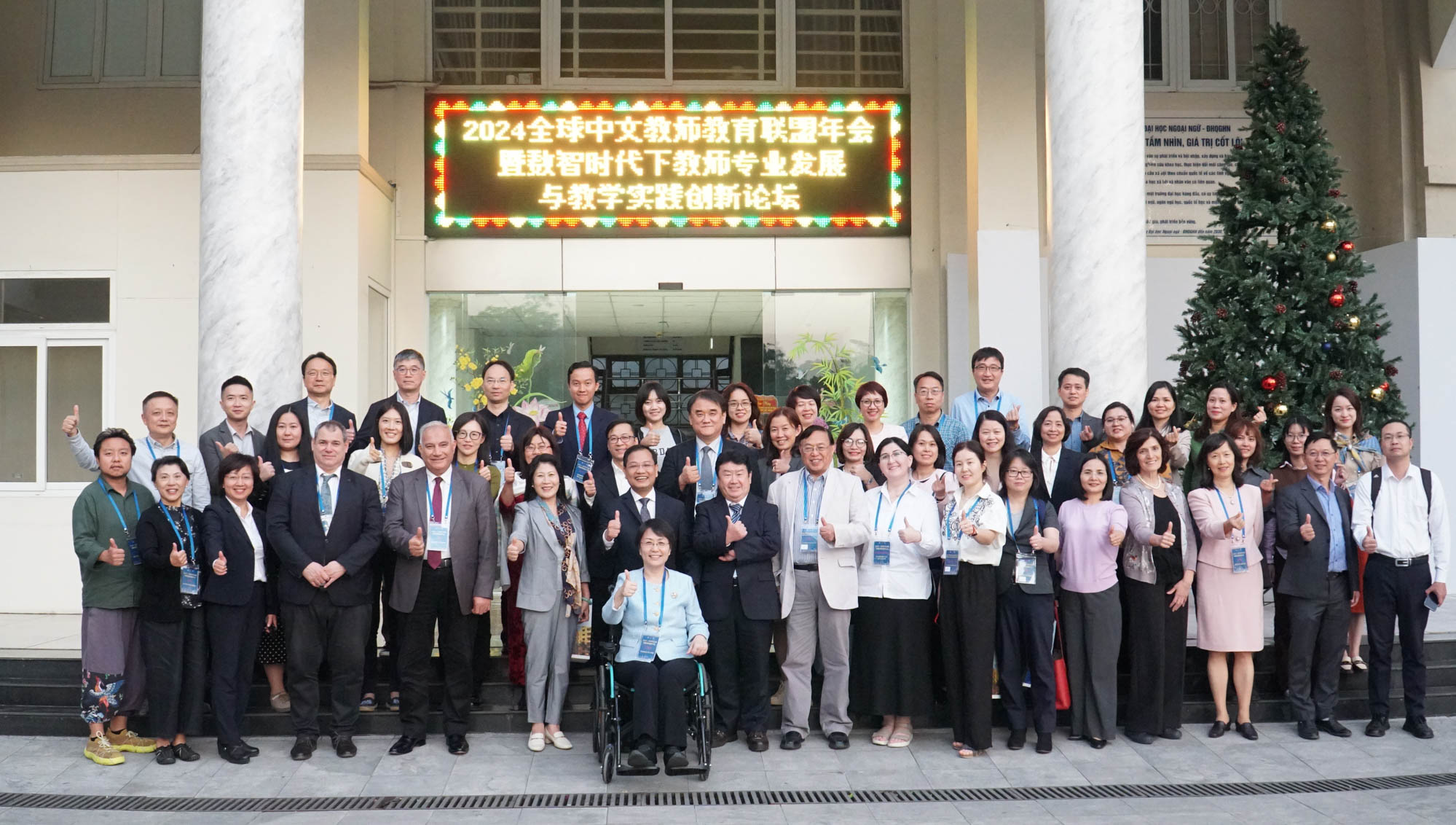 11月29日至12月1日,全球中文教师教育联盟年会暨数智时代下教师专业发展与教学实践创新论坛在越南河内召开。此次会议由beat365英国官网网站与越南河内国家大学下属外国语大学联合主办,beat365英国官网网站国际汉语文化学院与全球中文教师教育联盟承办。来自埃及、澳大利亚、加拿大、柬埔寨、韩国、吉尔吉斯斯坦、美国、南非、菲律宾、匈牙利、意大利、日本、新加坡、印度尼西亚、英国、越南及中国等17个国家的国际中文教育领域专家学者与一线工作者齐聚一堂,围绕中文教师职业化与本土化发展、数智时代中文教学实践创新等议题展开深入研讨、群策群力、凝聚共识。越南河内国家大学下属外国语大学副校长华玉山(Hoa Ngoc Son),beat365英国官网网站国际汉语文化学院党委书记、国际教育中心主任黄美旭以及匈牙利罗兰大学副校长郝清新(Hamar Imre)在开幕式上致辞。