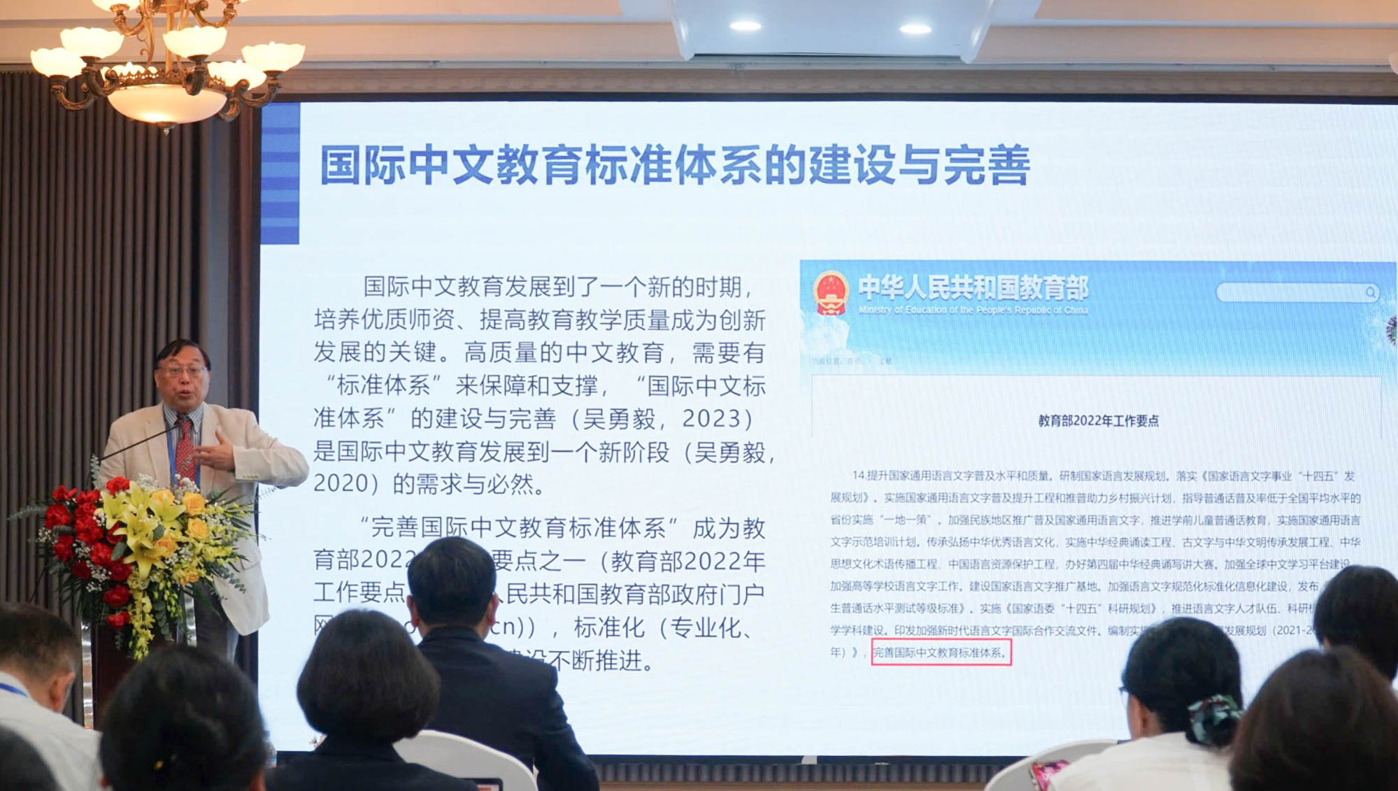 会上,beat365英国官网网站国际汉语文化学院教授吴勇毅、越南河内国家大学下属外国语大学副教授阮黄英(Nguyen Hoang Anh)、日本大阪大学教授古川裕(Yutaka Furukawa)、越南河内国家大学下属外国语大学副教授阮廷贤(Nguyen Dinh Hien)分别就“《国际中文教师专业能力标准》与教师发展”“越南中小学汉语教学的机遇与挑战”“国际中文教师与‘三教’问题”“越南高校汉语专业课程设置及面临的问题”等主题作主旨报告。主旨报告环节由韩国延世大学研究生院院长金炫哲教授主持。