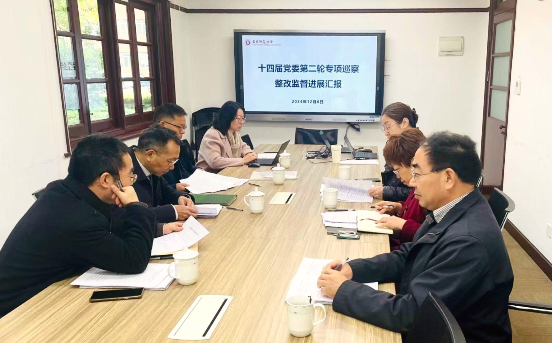 为进一步强化巡察整改监督,督促落实好整改责任,做优做实巡察“后半篇文章”,近期学校举行十四届党委第二轮专项巡察整改方案审核工作会议。校党委副书记、纪委书记、巡察工作领导小组副组长曹友谊,校党委常委、组织部部长、巡察办副主任朱军文,校纪委副书记、巡察办副主任俞黎阳,巡察办副主任郦妍,审计处处长王芝容,第二巡察组组长、教育学部党委书记闫露,第一巡察组副组长、实验室与装备处副处长李茂田出席会议。会议由俞黎阳主持。