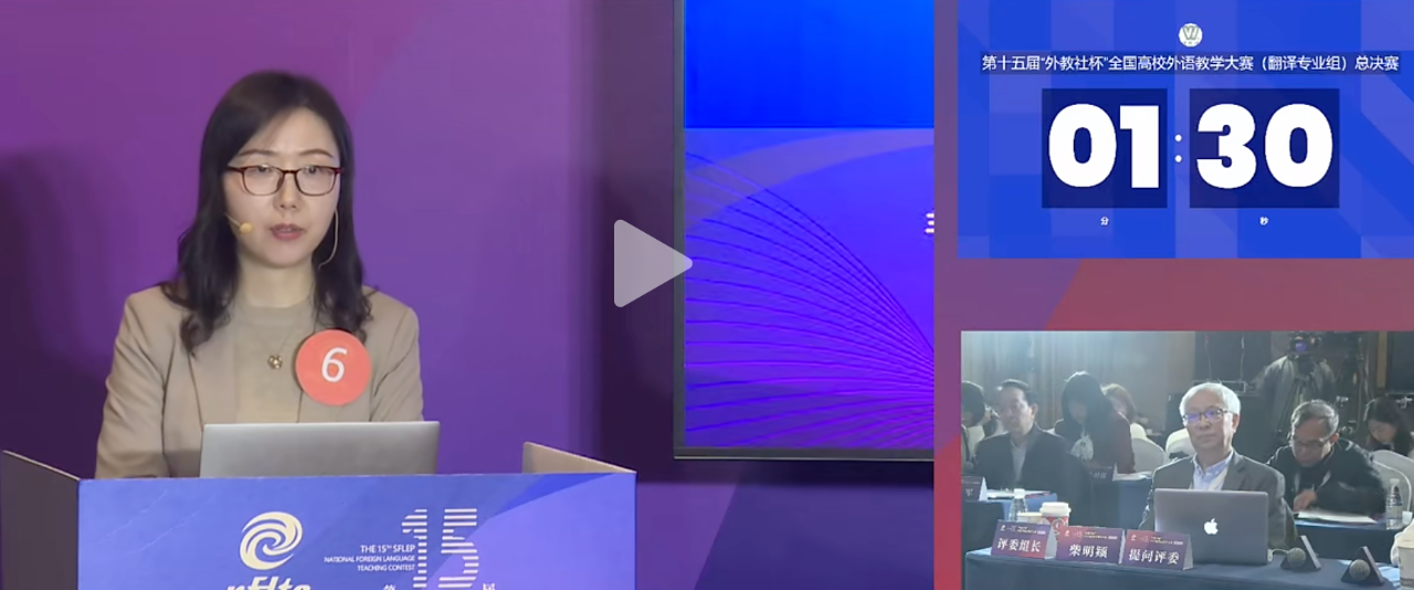 贾兰兰表示,本次大赛在说课环节创新性地引入了人工智能技术,这是一个全新的说课设计,感觉像是在“摸着石头过河”,但也体现了AI技术在改变外语及翻译教育、学习和职业传统模式中的重要作用。