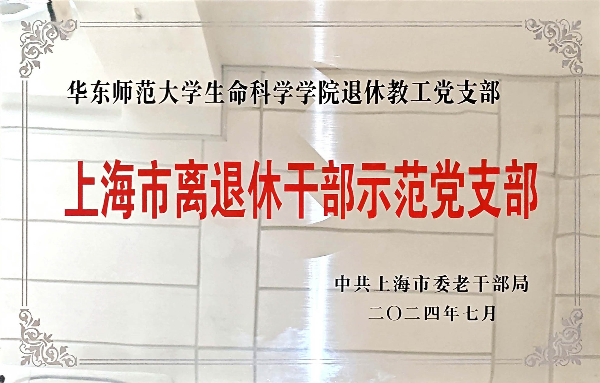 生命科学学院退休教工党支部获上海市离退休干部示范党支部命名