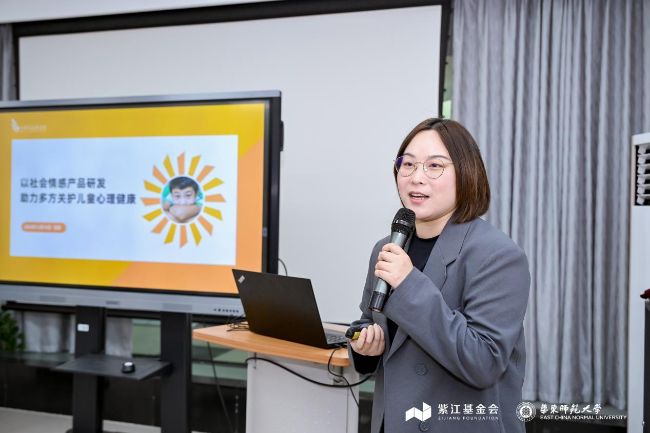 真爱梦想教育进修学院执行院长李国丽分享了《“梦想工程,让爱点亮梦想”真爱梦想公益课程设计与实践》,展示了如何通过校本课程激发儿童的潜能和社会情感能力以及通过师范生培养为公益课程提供优质师资。日慈基金会秘书长张真则基于学校场景和社区场景的需求调研,强调了社会情感产品研发在儿童心理健康关护中的重要性,及基于社会情感学习本土化的产品开发过程和产品成效。