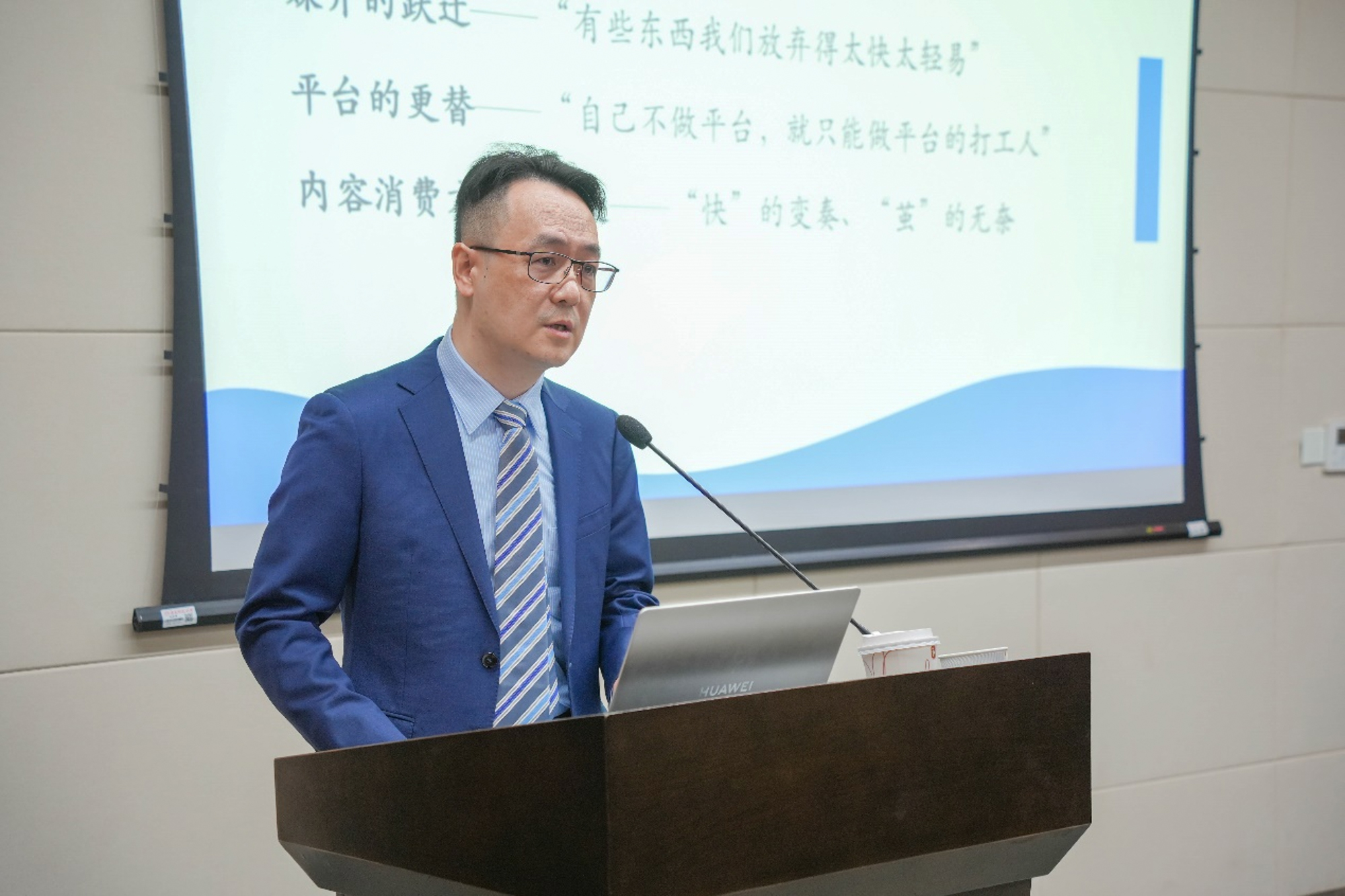 在专题讲座环节,文汇报社党委副书记、总编辑季颖,传播学院教授陈红梅,传播学院副教授赵路平,上海开放大学信息安全与社会管理创新实验室特聘研究员、上海高校辅导员网络素养培训授课讲师王赛分别聚焦全媒体时代主流媒体的坚守与创新、新时代活动与成就报道的采访和写作、数智时代的舆情分析与应对以及高校网络宣传工作舆情应对实操等主题,以理论结合实务,围绕提高与会宣传工作者的业务素养和履职能力进行“传道解惑”。