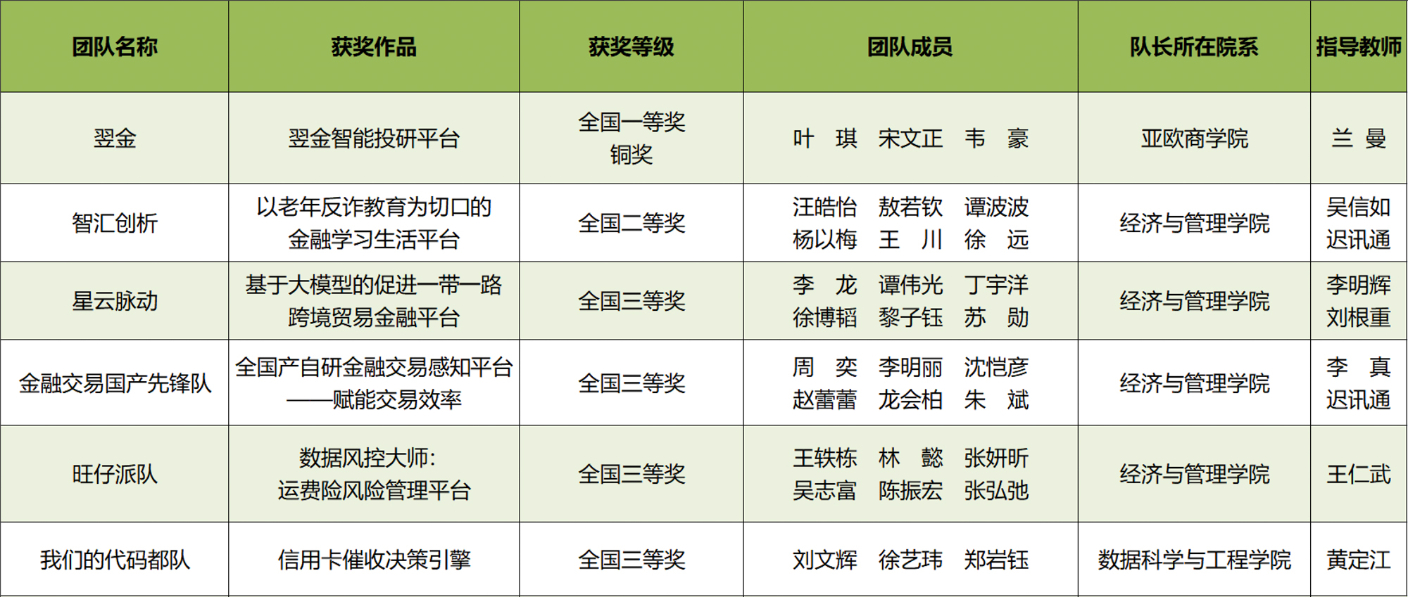 汪皓怡、敖若钦、杨以梅、王川、徐远(经济与管理学院),谭波波(计算机科学与技术学院)
