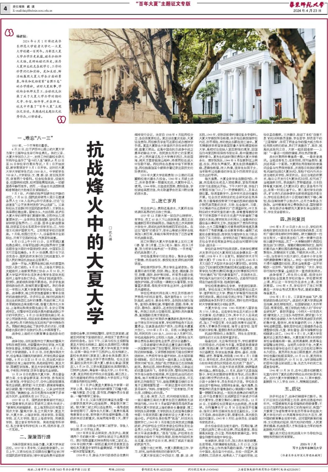 校报“百年大夏”专版