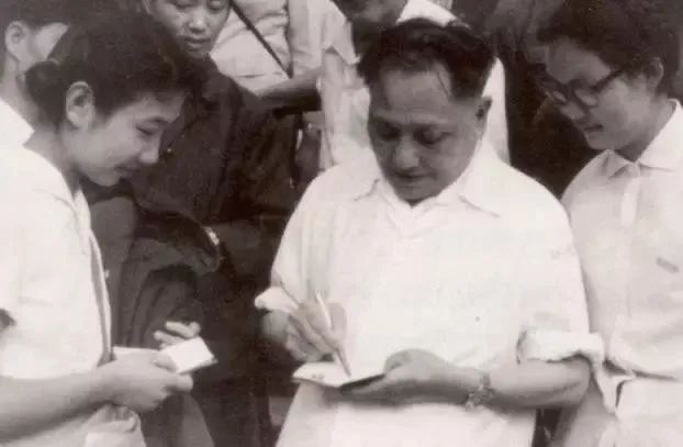 1979年邓小平在黄山给偶遇的大学生们签名