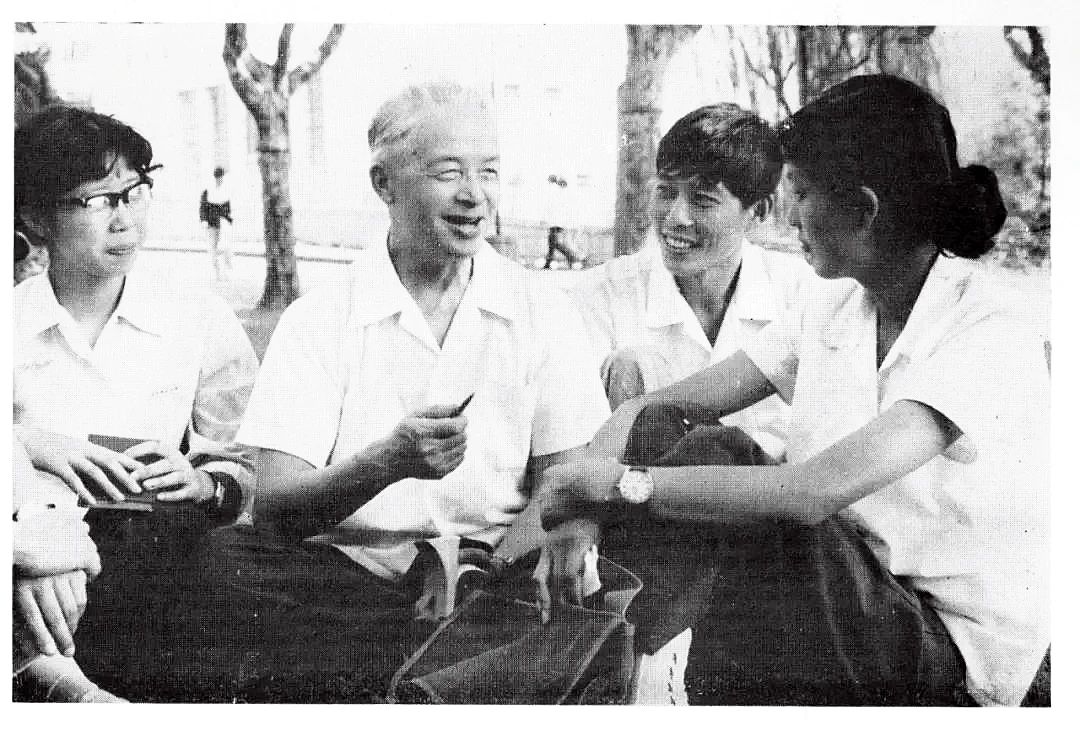 1980年,时任beat365英国官网网站党委书记施平与学生交谈