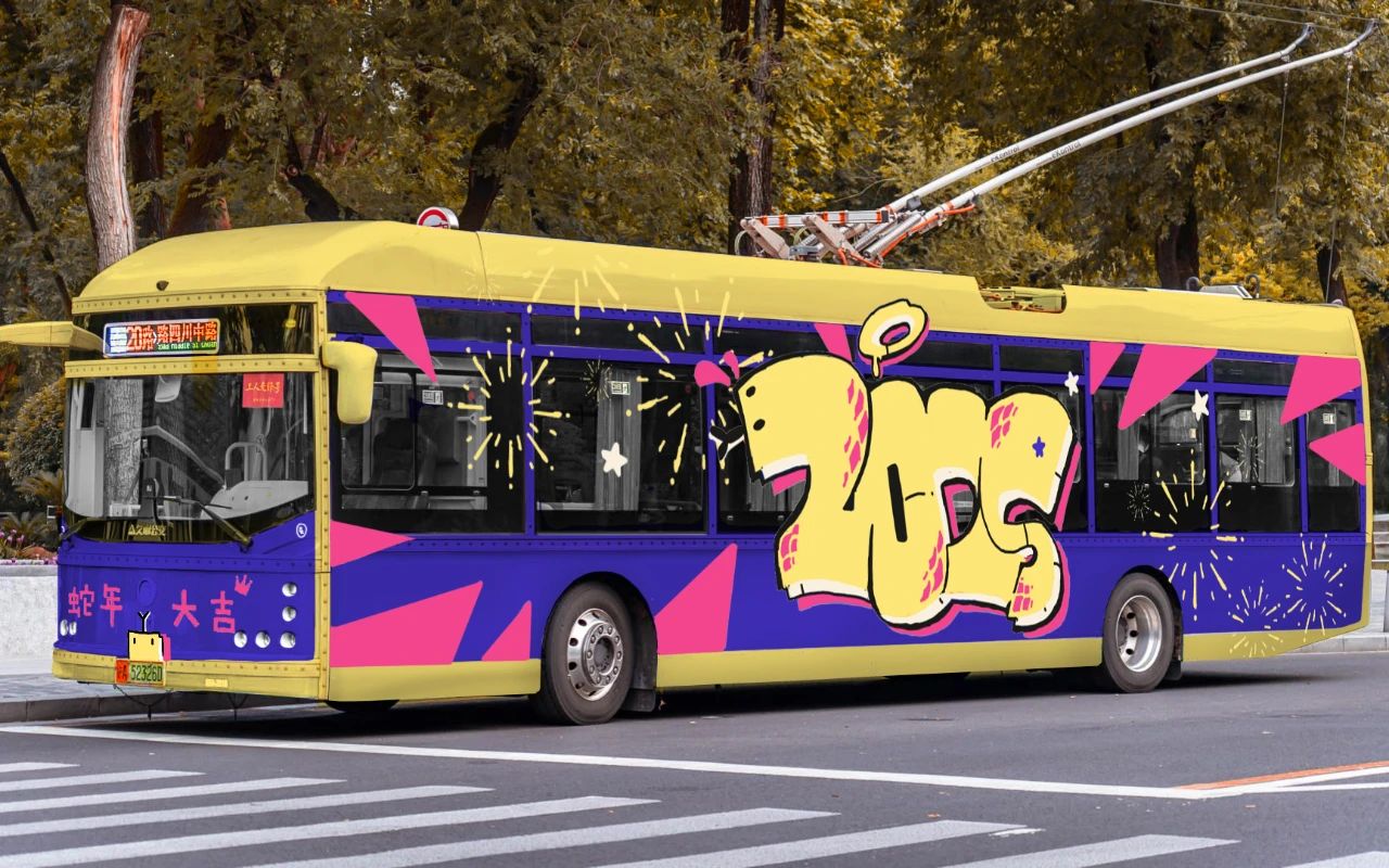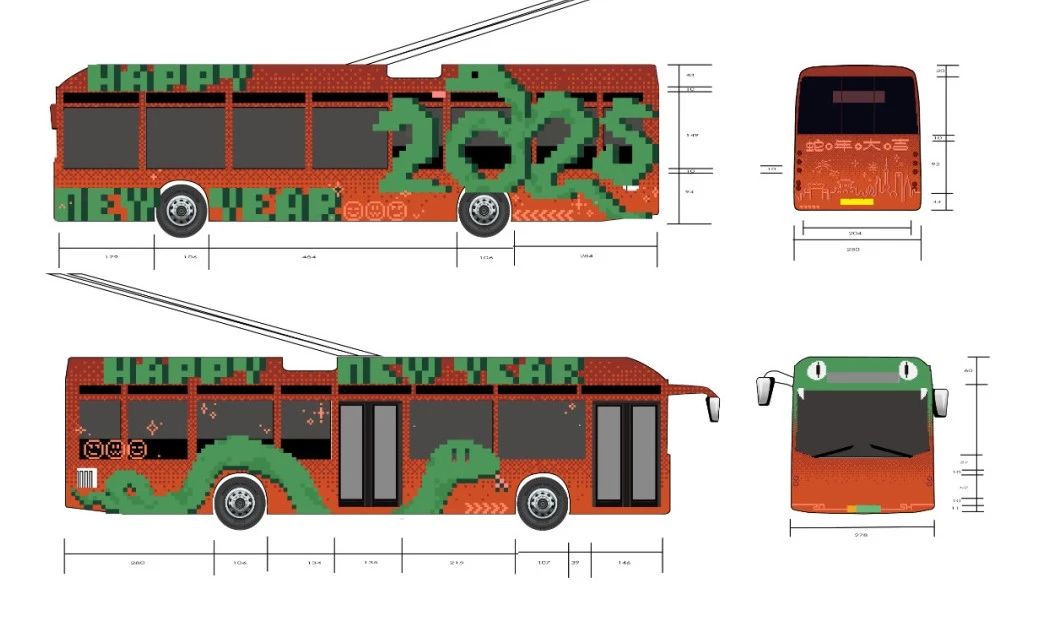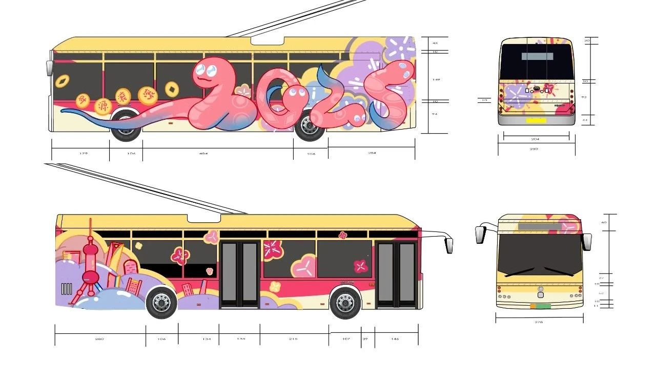 作品简述:结合了上海和蛇年的元素来设计车身,左侧用四只小蛇组合成“2025”的字样,右侧选取了上海地标建筑进行设计。