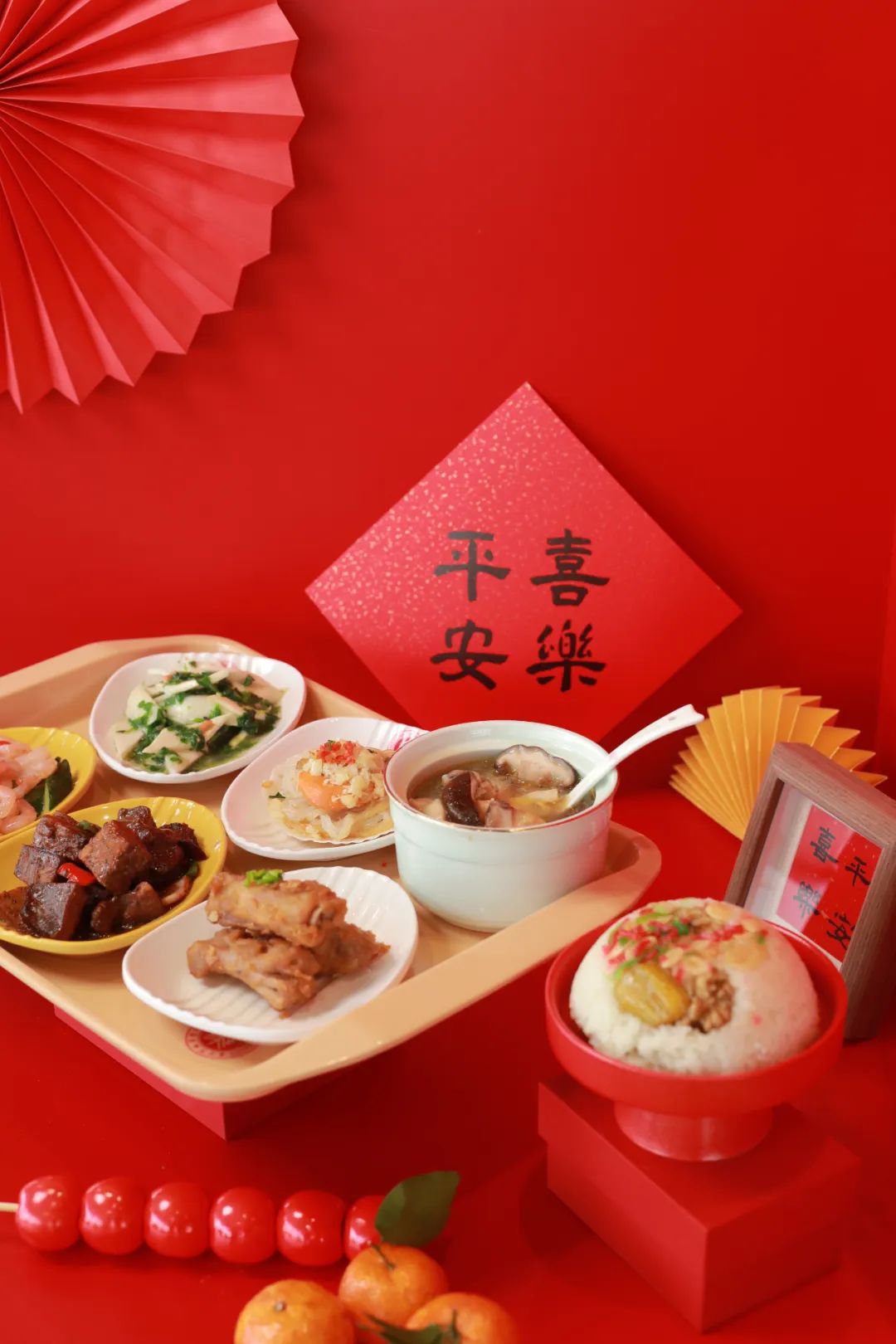 除夕夜还随餐赠送新春大礼包(内含水果、瓜子花生、花式糖果、烘焙点心等)!