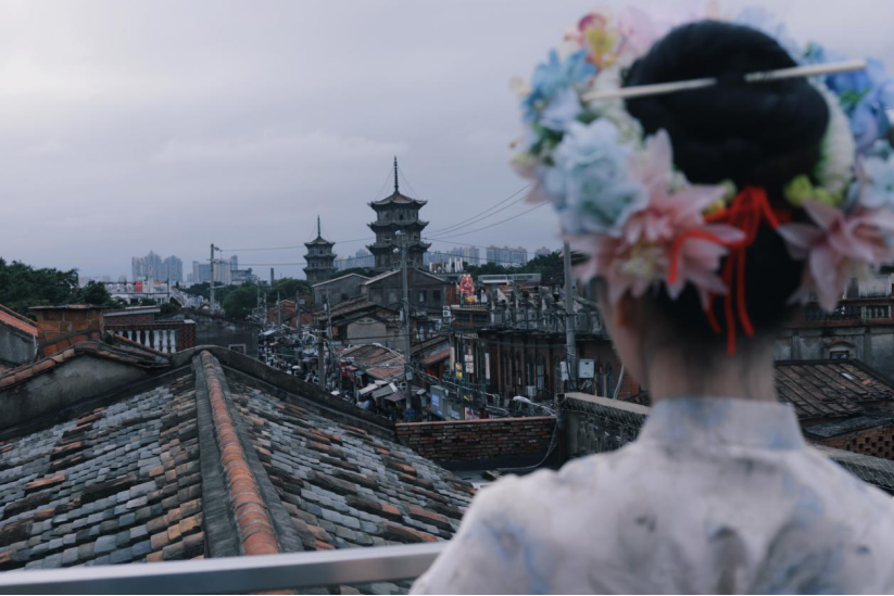 红砖古厝和缥缈的檀香,参天树木和远处的海浪,刺桐古城叙说着千年前海上丝路的繁华。梳头头髻圆,发中簪春天,和所有蟳埔的渔女一样,借鲜花修饰生活,用服饰装点希望。