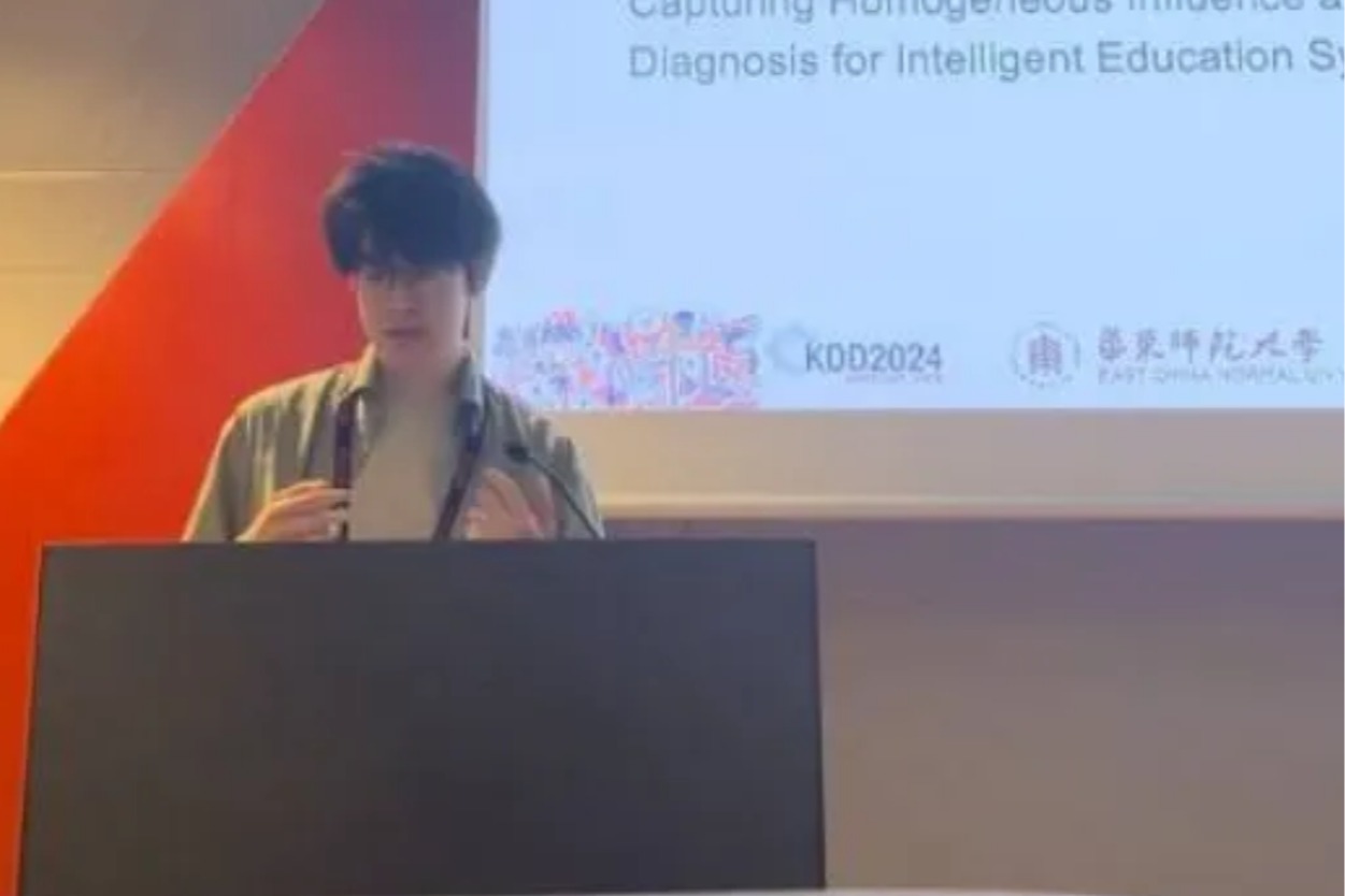 此后,沈君豪又受邀参加了2024年国际知识发现与数据挖掘大会、中国计算机学会青年菁英大会和中国机器学习及其应用研讨会,他代表团队展示超图建模在学生同质性认知诊断方法上的最新研究成果,吸引了各国研究者的广泛关注。