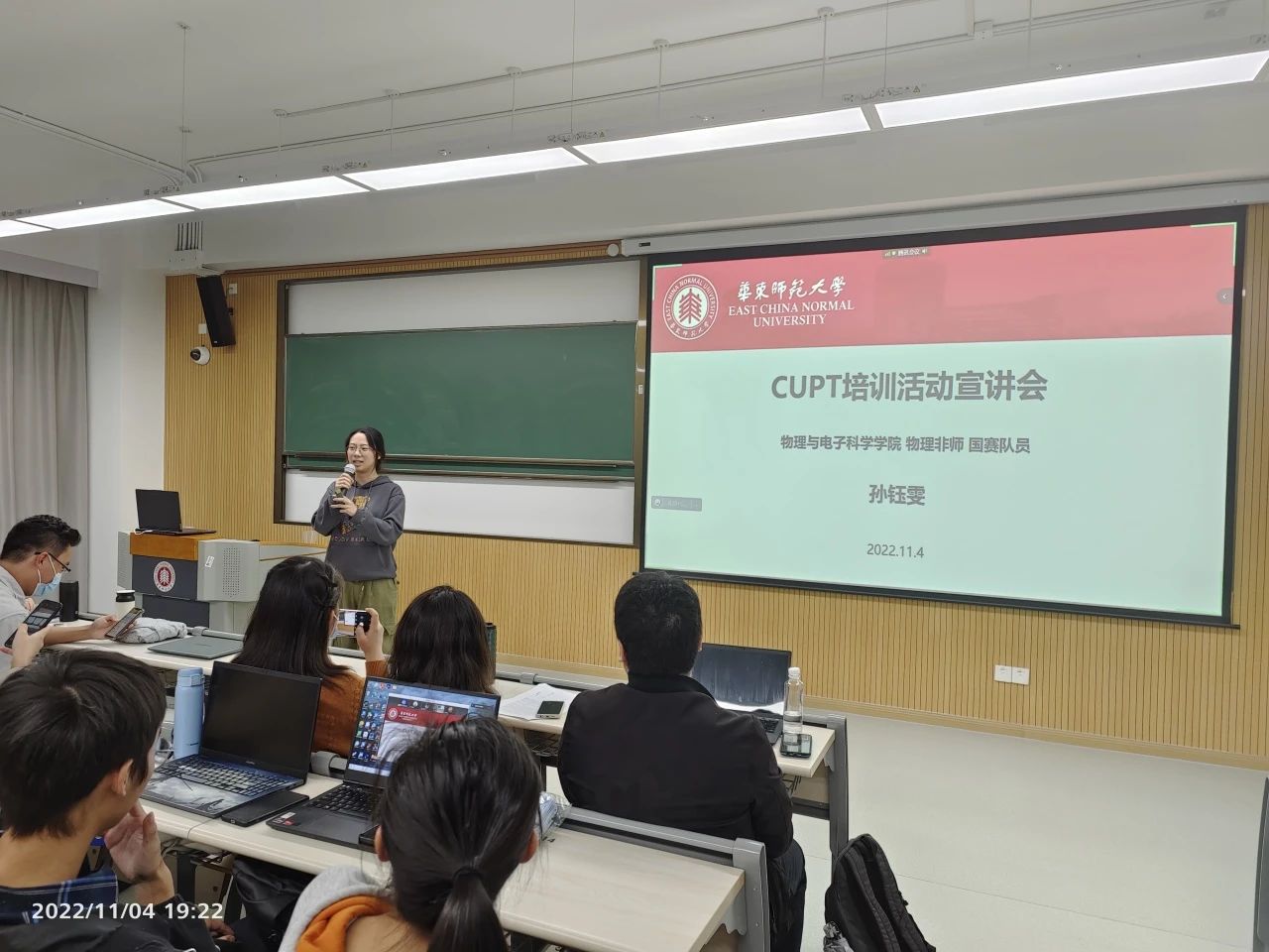 孙钰雯在迎新活动中向新生展示CUPT实验装置