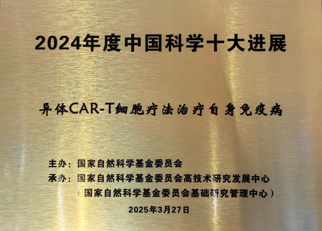 “异体CAR-T细胞疗法治疗自身免疫病”入选2024年度“中国科学十大进展”