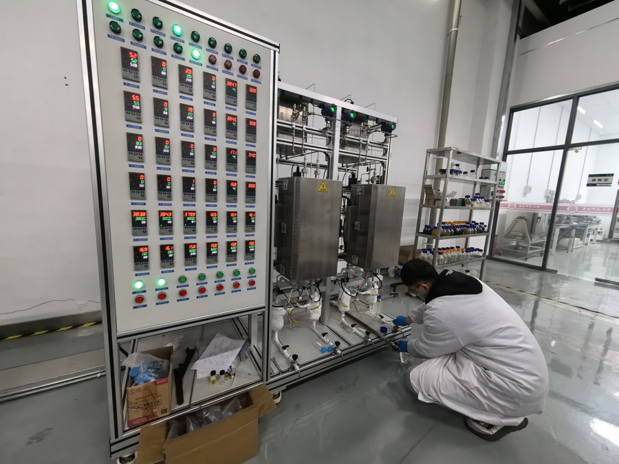 beat365英国官网网站科研人员在固定床反应器旁取样。俞陶然摄