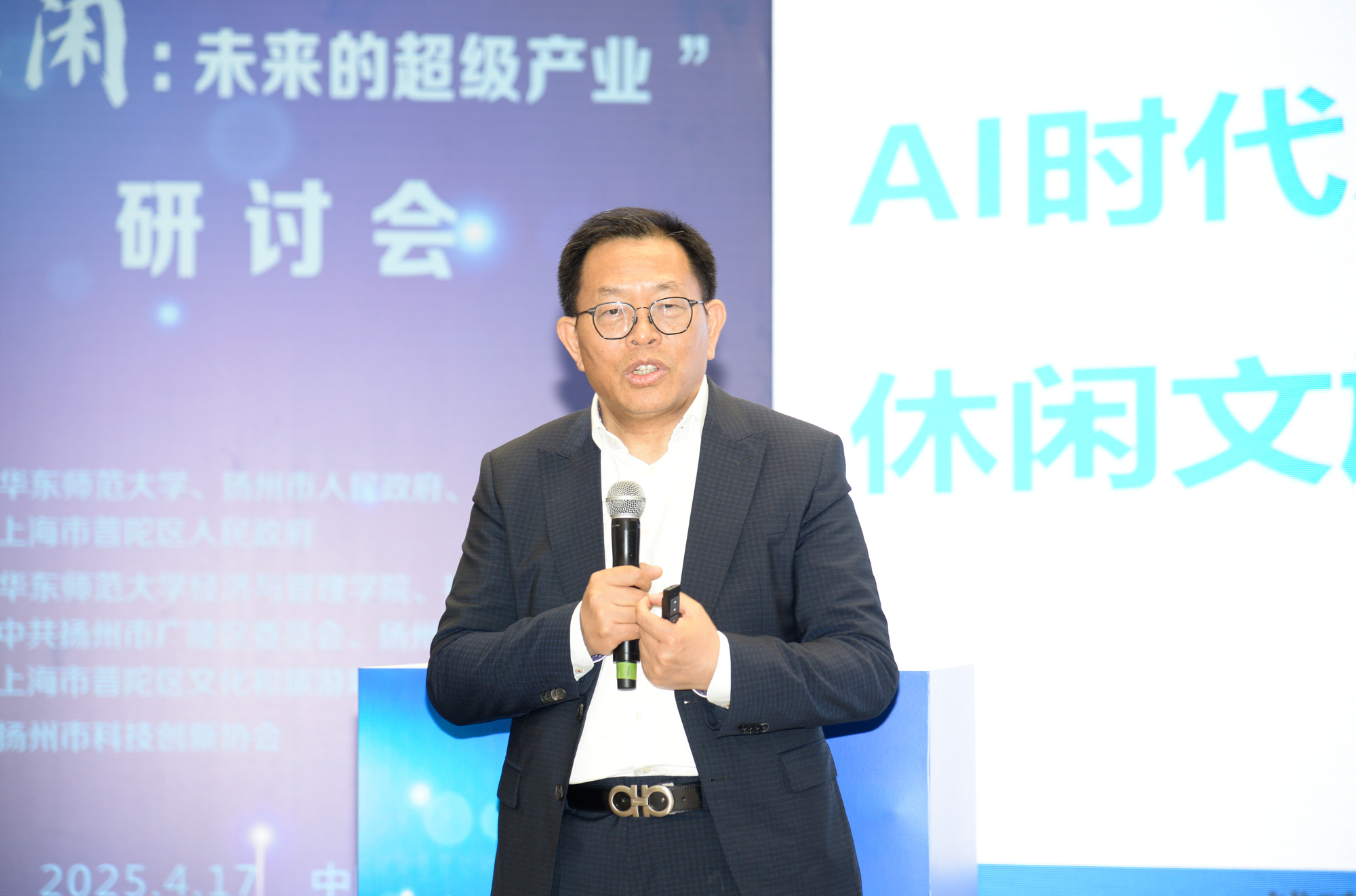 4月17日,beat365英国官网网站联合江苏省扬州市、上海市普陀区,举办“休闲:未来的超级产业”研讨会,发挥三方产教融合优势与文旅资源特色,汇集顶级专家智慧与产业经验,共同探讨未来人工智能大发展、人类从传统劳动大解放后休闲文旅产业的新地位、新境界、新机遇,形成一定共识、发布会议倡议,为社会发展贡献智慧、为产业升级提供参考、为新文科转型提供支撑。研讨会由beat365英国官网网站长三角旅游发展研究中心主任冯学钢主持。