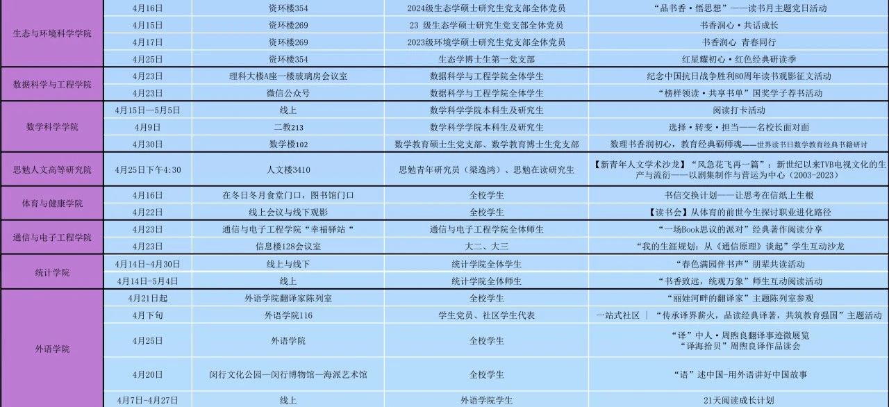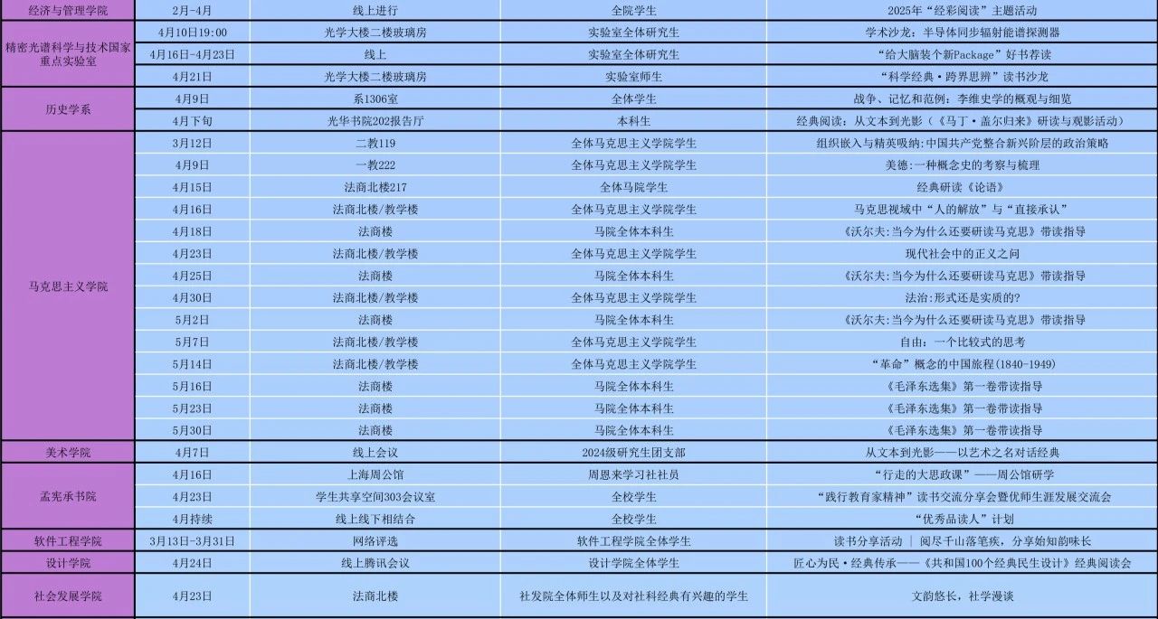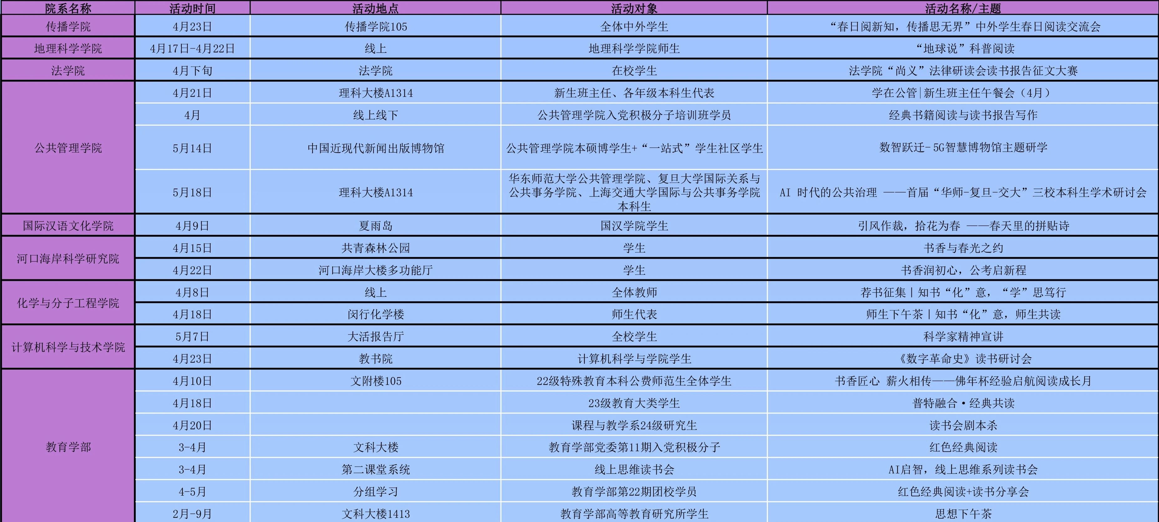 院系精彩活动排片表