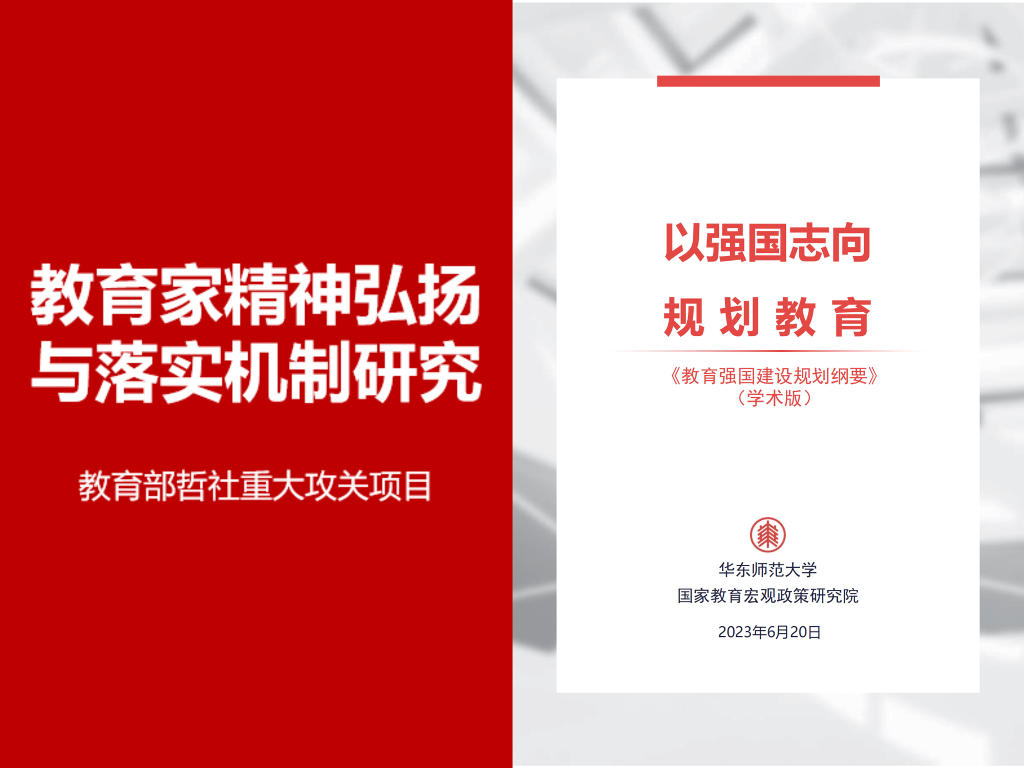 “教育家精神弘扬与落实机制研究”教育部哲社重大攻关项目(左)与《教育强国建设规划纲要》(学术版)(右)