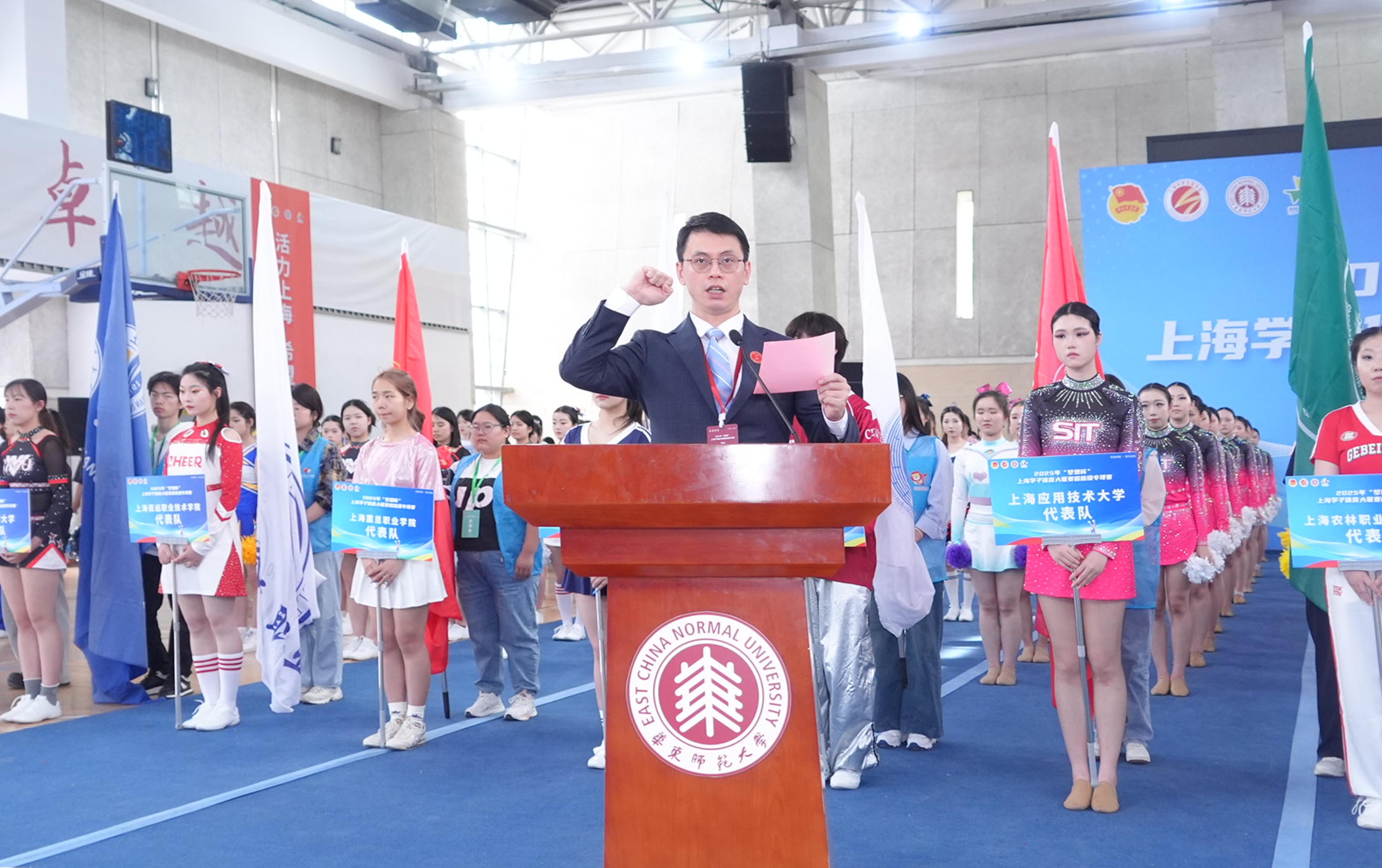 上海市健美操协会副秘书长、beat365英国官网网站熊德良老师代表全体裁判员进行宣誓