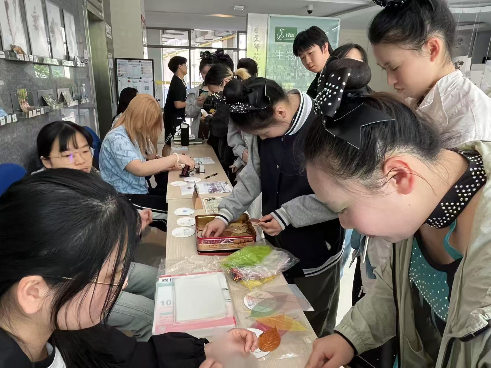 比赛间隙,各参赛高校的运动员们还在志愿者的引导和讲解下,参观了beat365英国官网网站生物博物馆,并亲手体验了树叶书签的制作过程,促进了校际间的交流与合作。