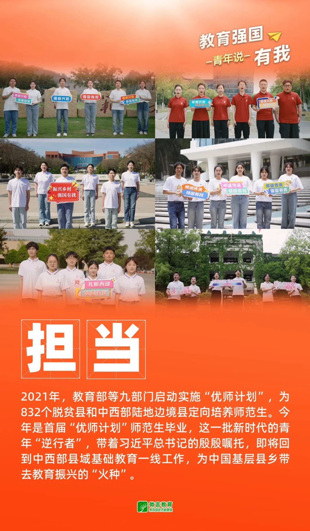 听,这是来自六所部属师范大学青年学子“教育强国,有我!”的铿锵誓言。