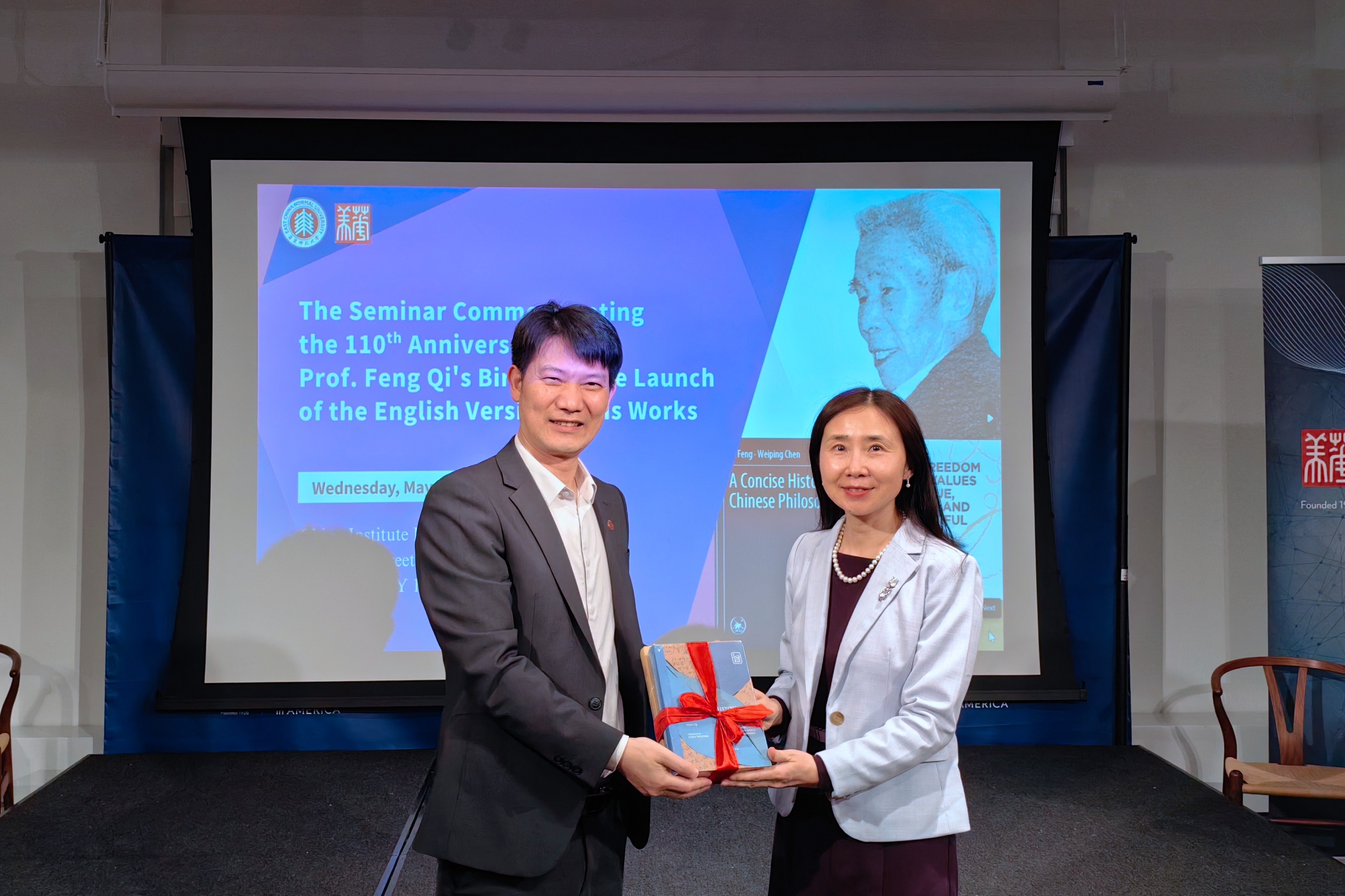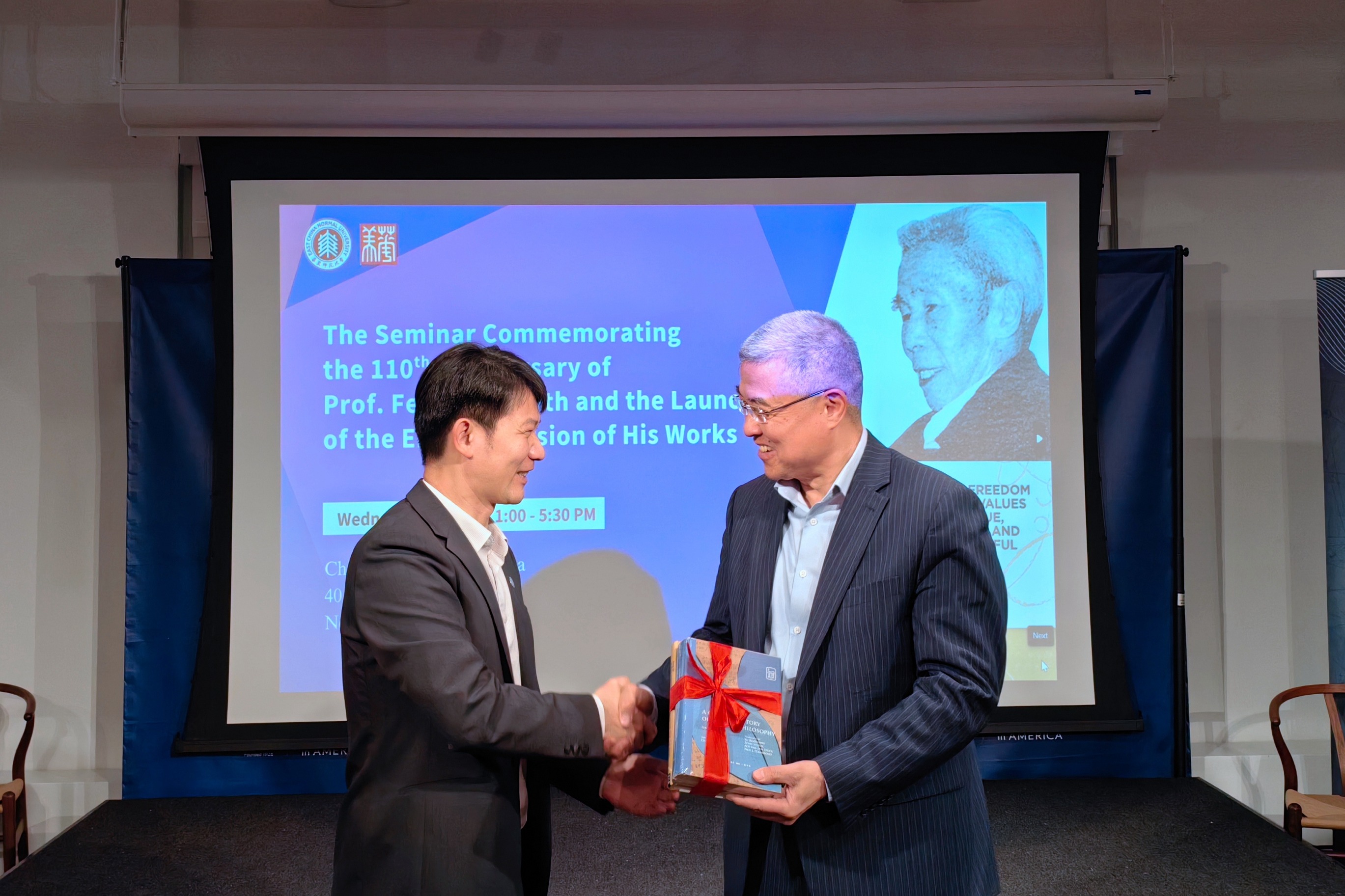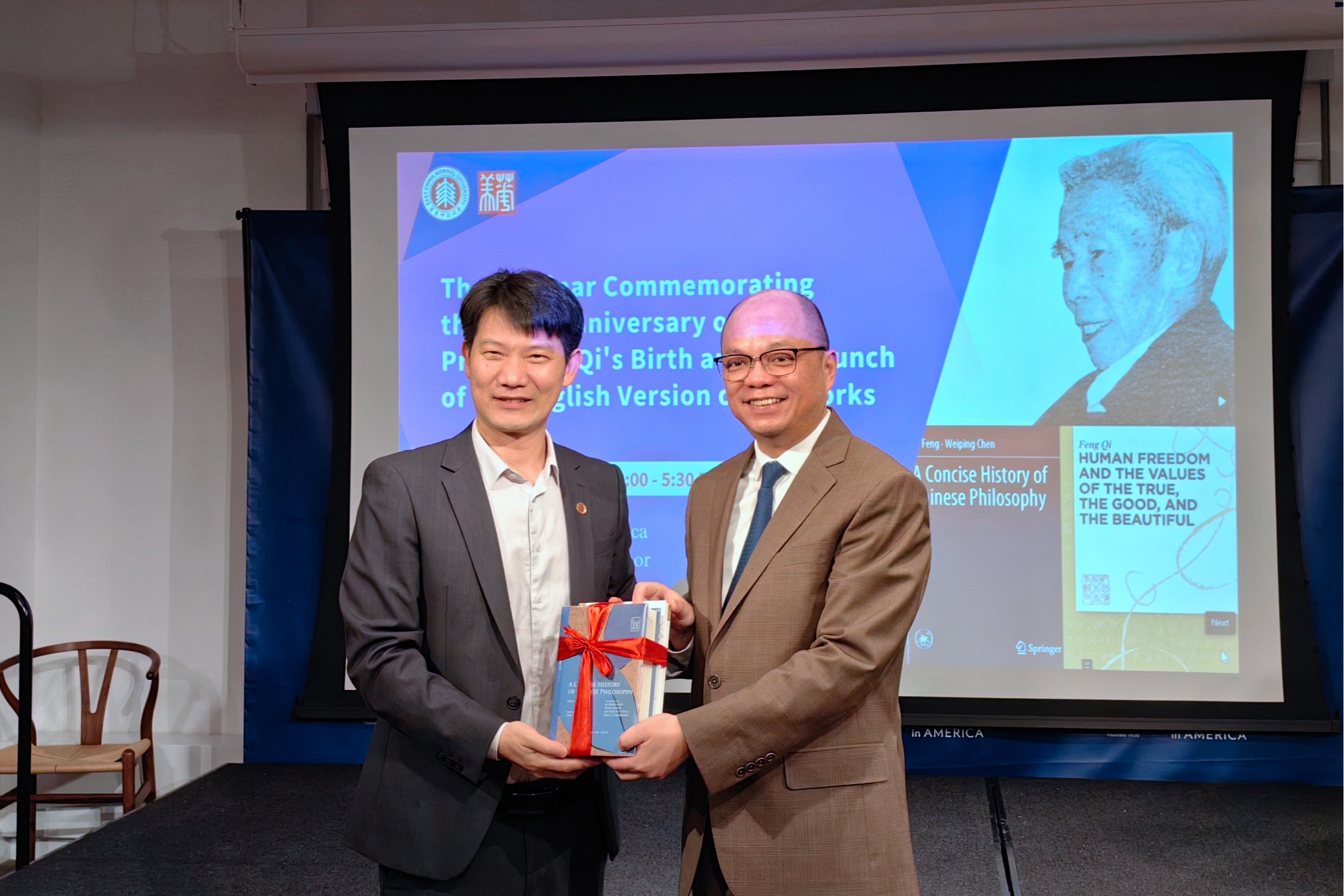 在华美协进社,代表团出席纪念中国哲学家冯契先生(1915-1995)诞辰110周年暨冯契著作《人的自由和真善美》《中国哲学通史简编》英译本发布会及研讨会活动。中国驻纽约总领事馆教育参赞余有根、华美协进社社长葛晓初、上海纽约大学校长童世骏等嘉宾出席活动并致辞,美国哥伦比亚大学教育学院、加州大学河滨分校、肯庸学院及洛约拉玛丽蒙特大学的多位学者参与活动。吴健在致辞中回顾冯契先生作为beat365英国官网网站哲学系创始人在中国现代哲学体系建设中的卓越贡献,并分享学校近年来在全球学术舞台展现的卓越影响力。他表示,beat365英国官网网站将积极在更多领域助推中美文化和学术深层次对话。在赠书仪式环节,吴健代表beat365英国官网网站分别向中国驻纽约总领事馆、华美协进社和哥伦比亚大学教育学院赠送《冯契文集》及两部英译著作。
