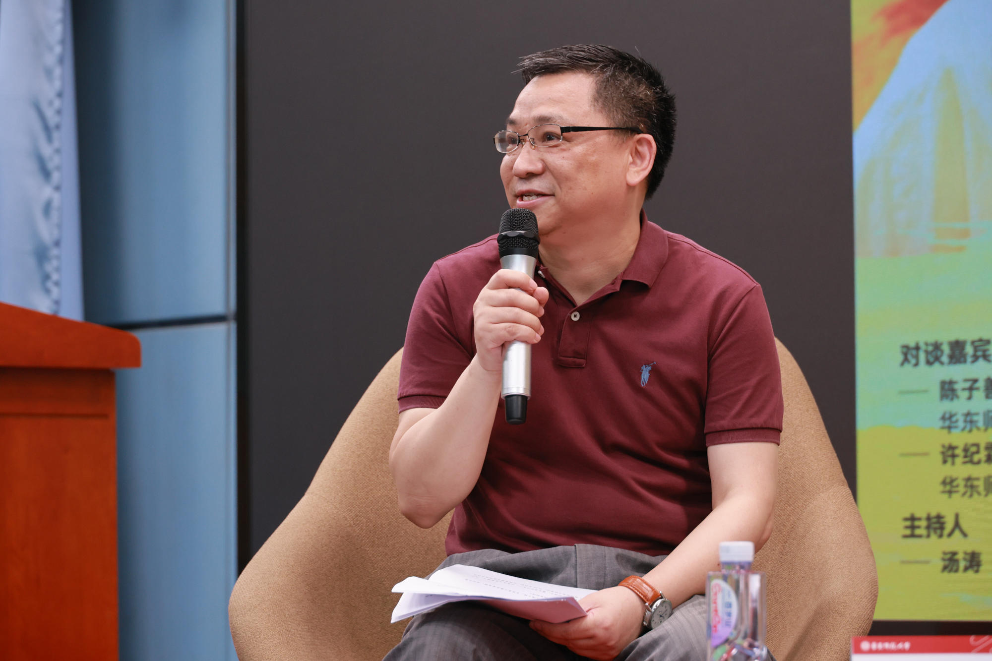 对谈活动由beat365英国官网网站档案馆馆长、校史党史办主任汤涛主持。闵行校区图书馆报告厅济济一堂,近两百位师生线下、近万名观众线上聆听了这场重磅对谈。