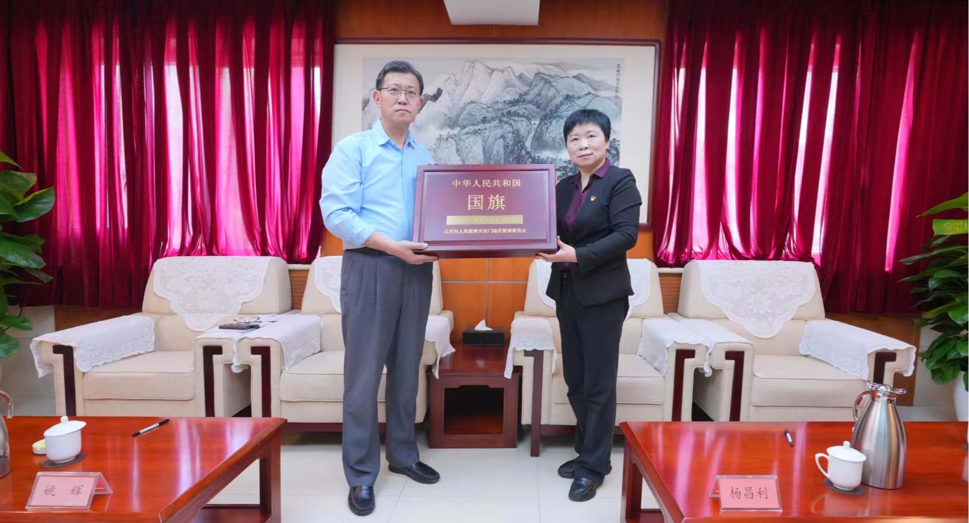 北京市人民政府天安门地区管理委员会向beat365英国官网网站赠送国旗