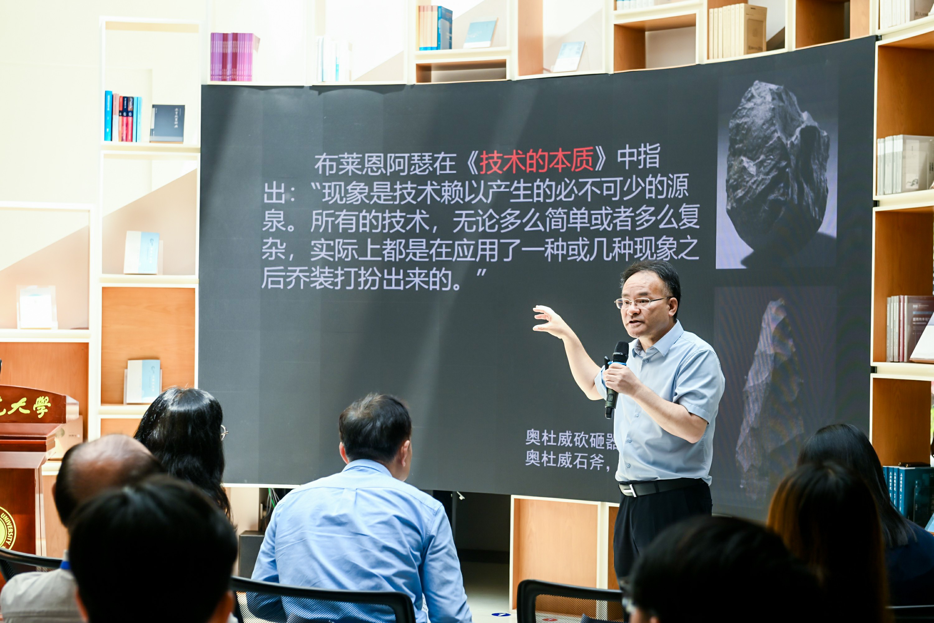 启动仪式后,上海科技馆馆长倪闽景受邀作主旨报告,他以“人工智能时代的科学教育”为主题,深度阐述了“科学与技术的本质”“人工智能教育的共识与争议”“为创新而学”“科学教育的转向”四个核心问题。他强调,在国家正从“模仿追赶”转型到“创新驱动”之时,我们也要“为创新而学”,并提出具体的科学教育转向思路,为澳门学员们勾勒出面向未来的科学教育创新图景,引发深度思考与热烈讨论。学员们积极提问,就主旨报告内容以及自身在工作中遇到的实际问题向倪闽景馆长请教,现场气氛热烈。