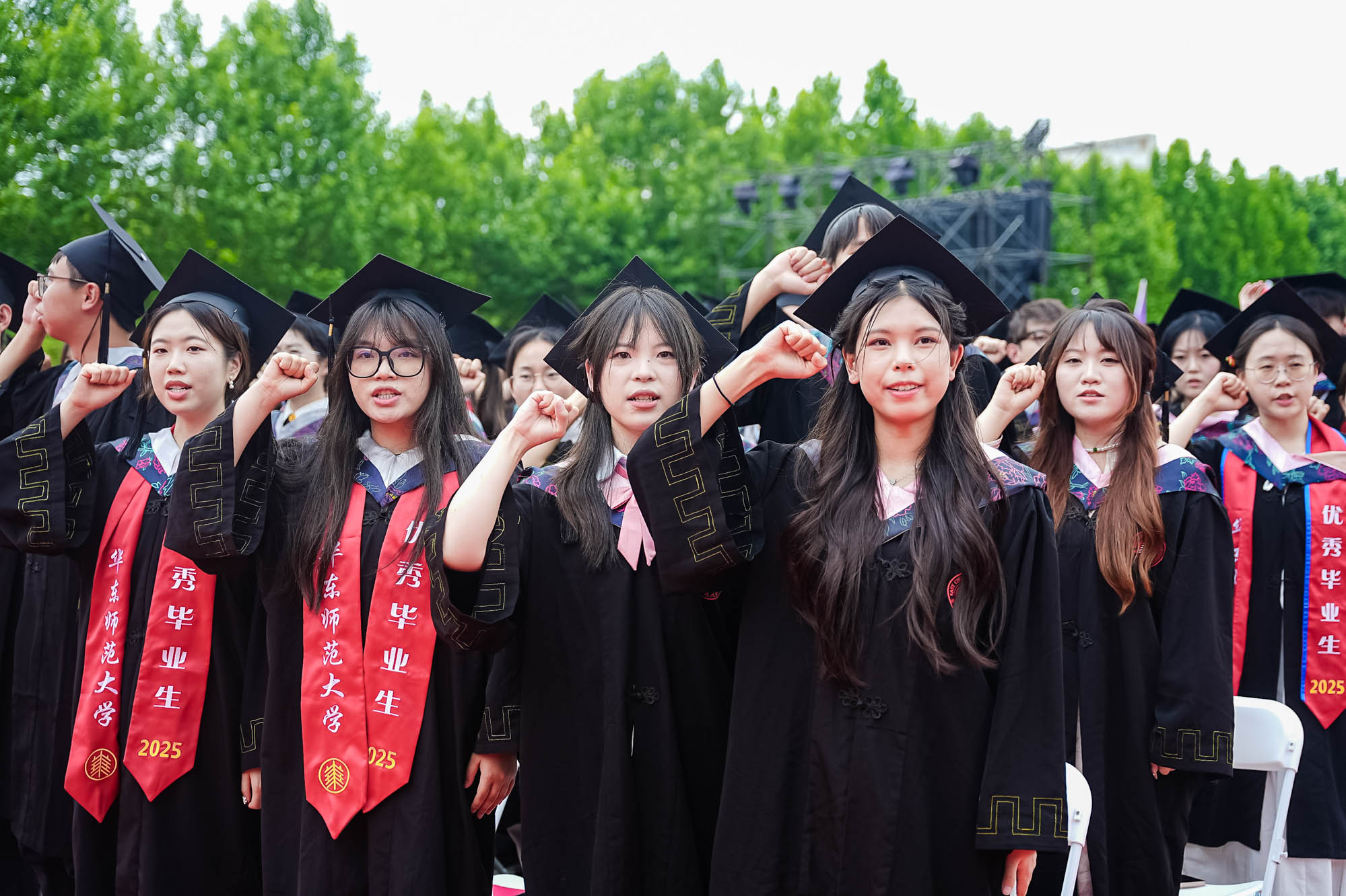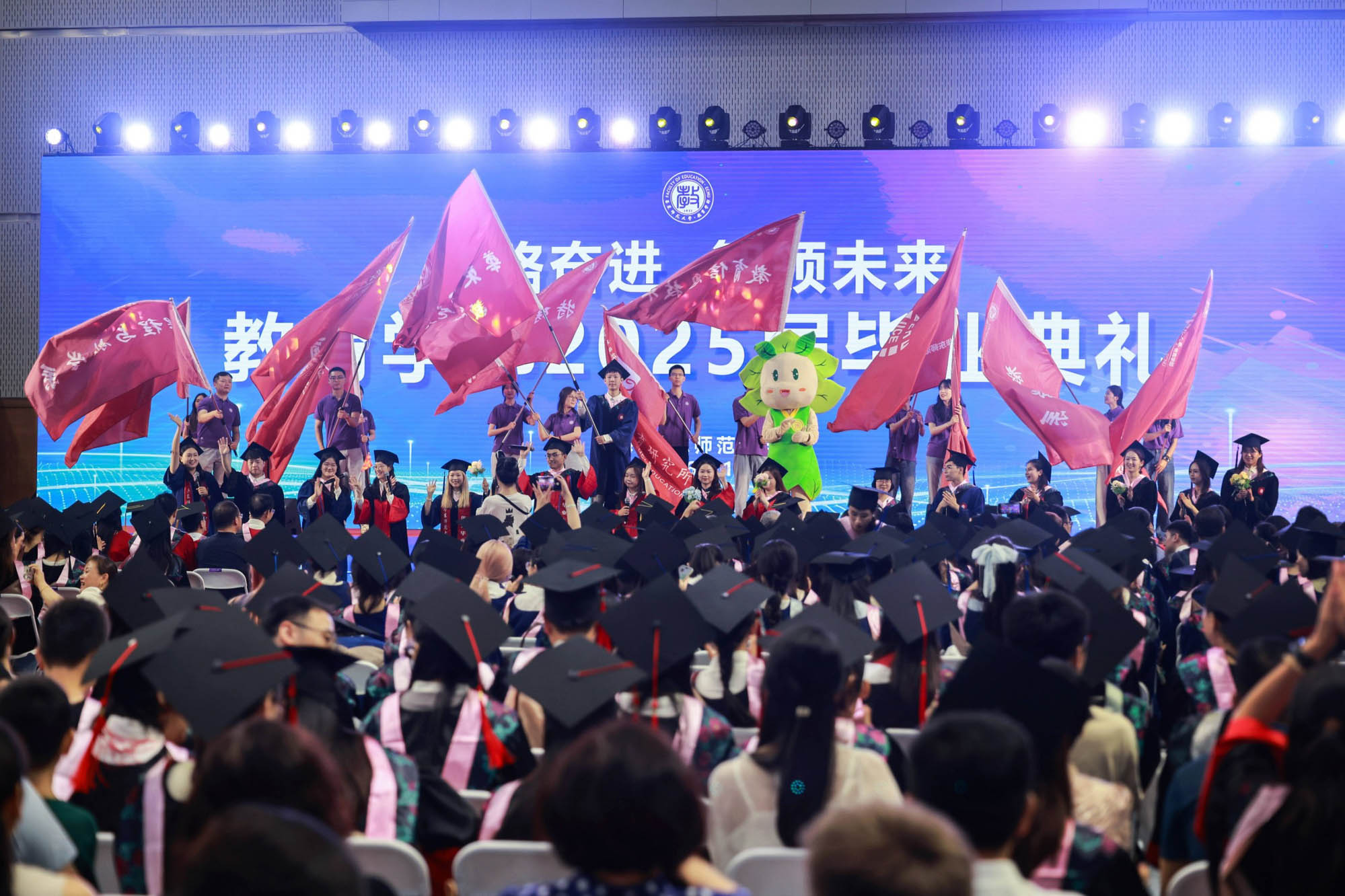 毕业典礼上,校领导与嘉宾为2025届校友联络大使颁发聘书。师大聘任238位毕业生为2025届校友联络大使,希望通过校友联络大使,建立校友与学校、校友与校友之间更加广泛而密切的联系,更好地回应校友的关切,服务学校的发展。