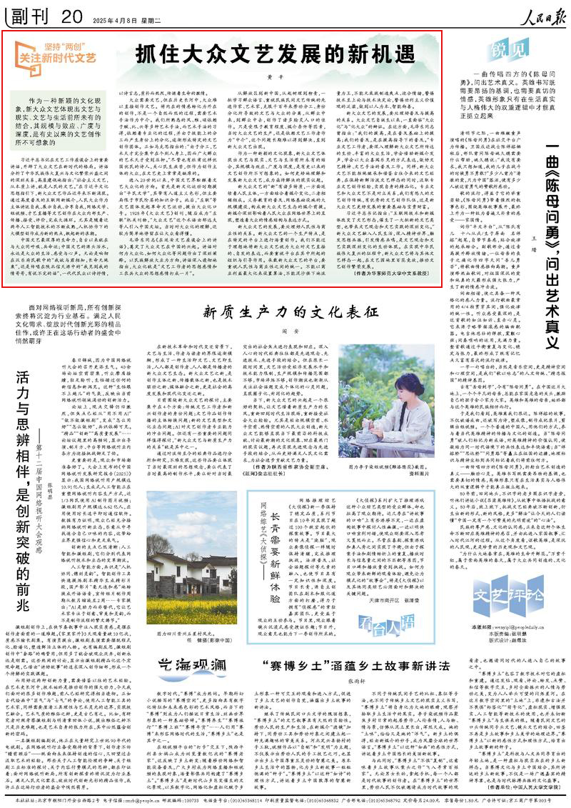 beat365英国官网网站中国语言文学系教授黄平《抓住大众文艺发展的新机遇(坚持“两创”·关注新时代文艺)》一文刊登在2025年4月8日《人民日报》。