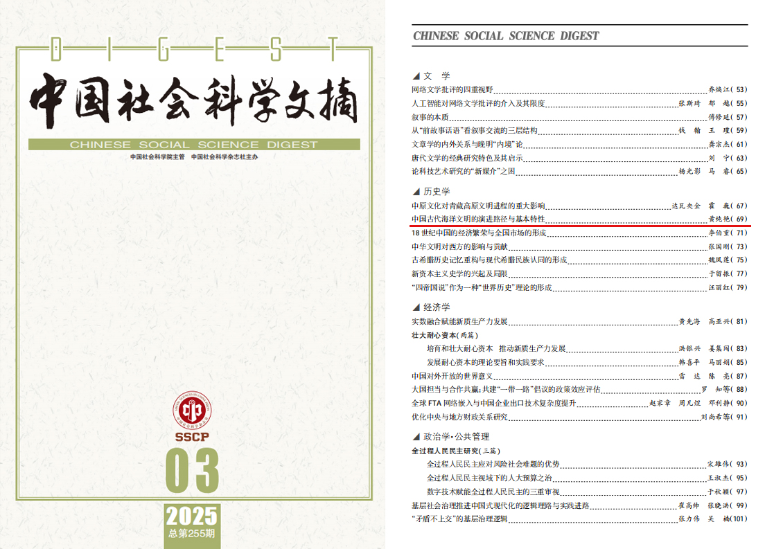 |黄纯艳教授文章被《中国社会科学文摘》全文转载,探讨中国古代海洋文明的演进路径与基本特性