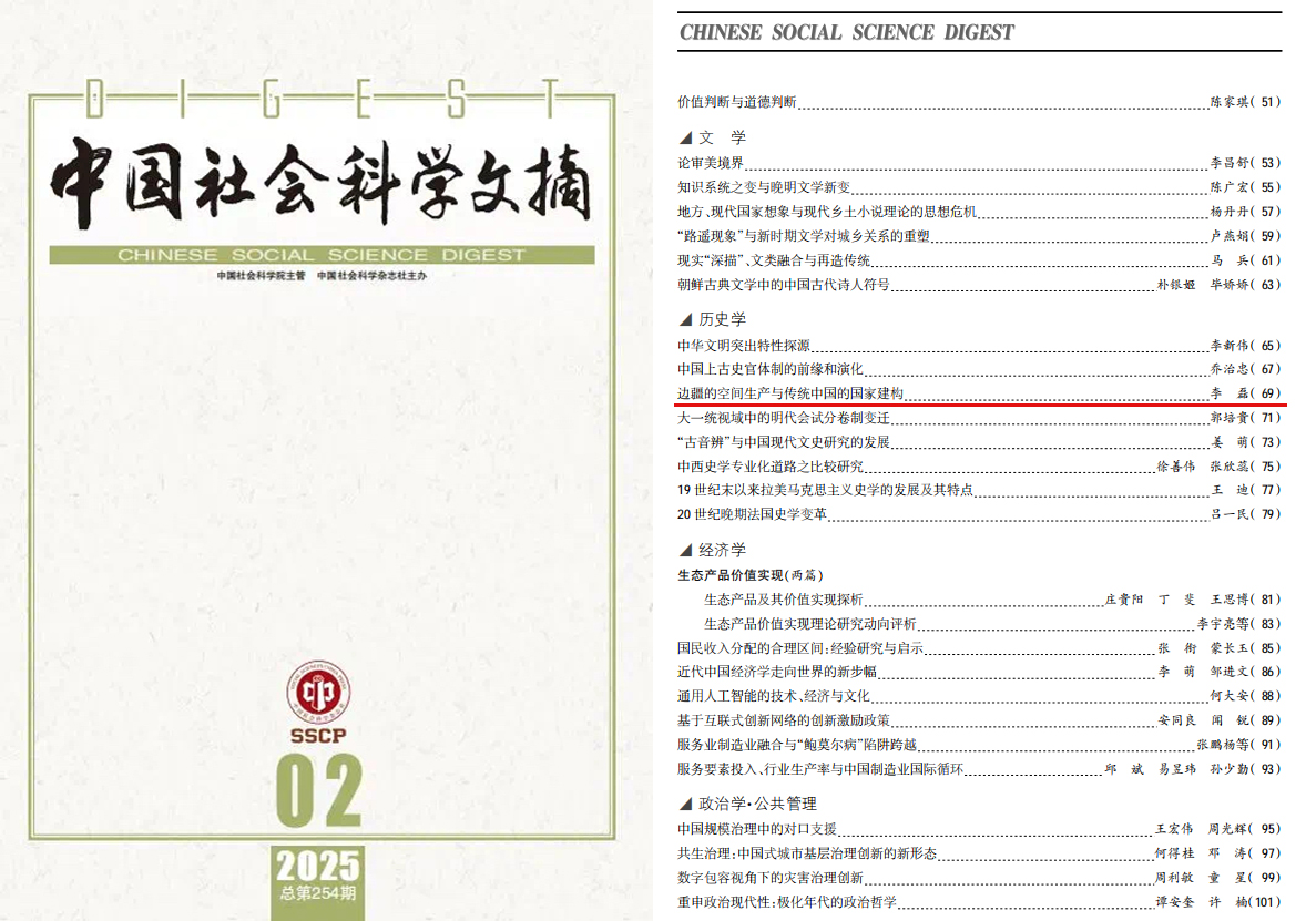 |李磊教授文章被《中国社会科学文摘》全文转载,探讨边疆的空间生产与传统中国的国家建构