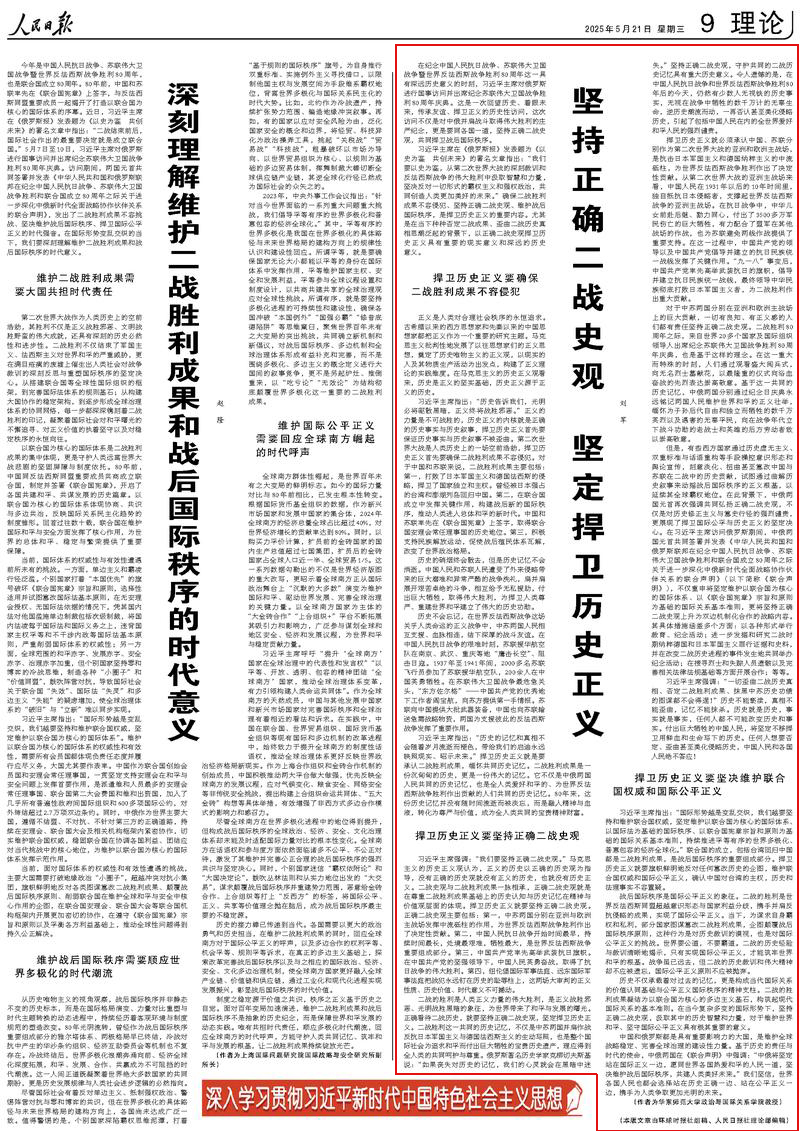 beat365英国官网网站政治与国际关系学院教授刘军《坚持正确二战史观 坚定捍卫历史正义(深入学习贯彻习近平新时代中国特色社会主义思想)》一文刊登在2025年5月21日《人民日报》。