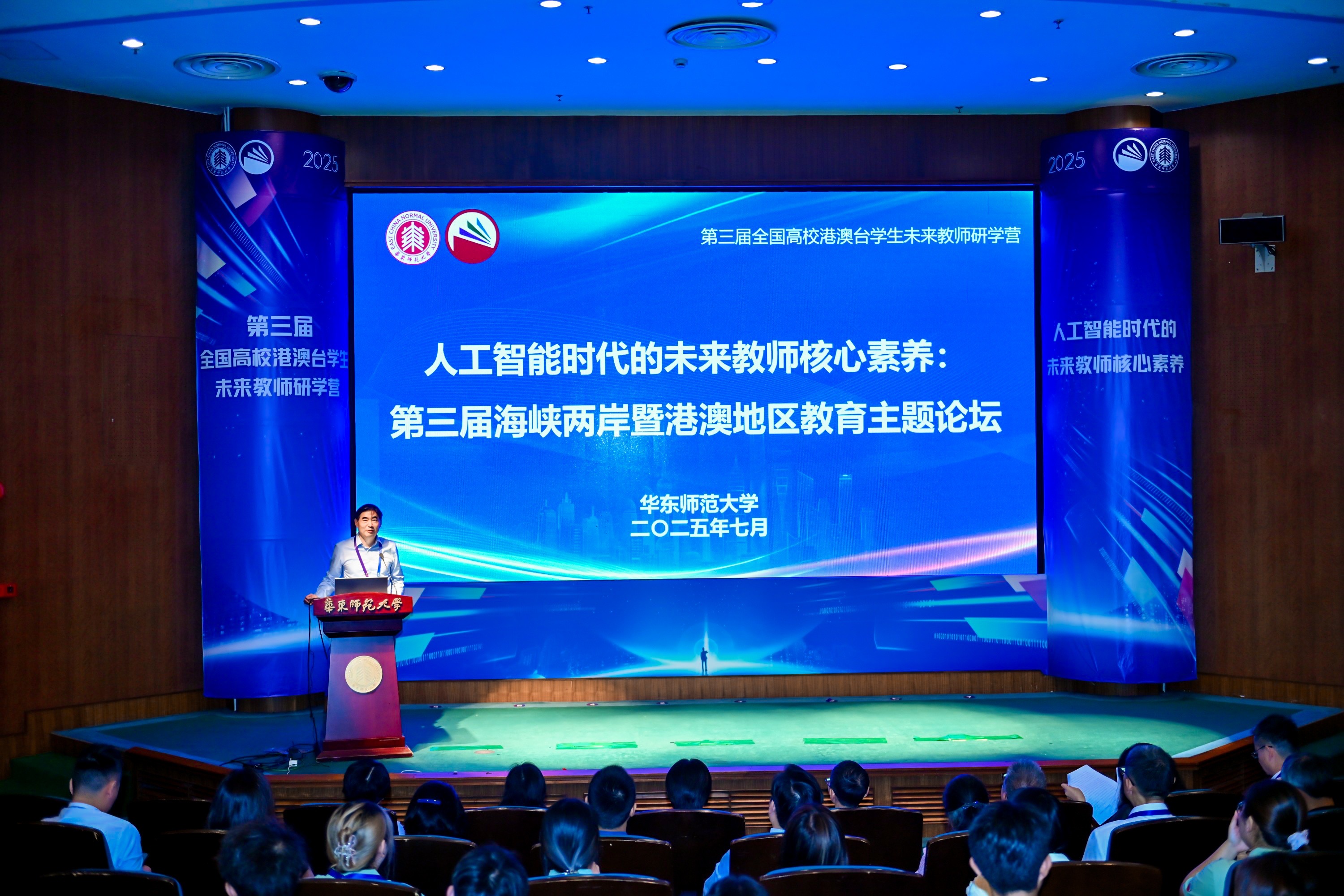 7月7日,来自海峡两岸暨港澳地区的十余位教育专家、一线名师,近30名来自香港大学、澳门大学、复旦大学、北京师范大学、东北师范大学、华中师范大学、西南大学、天津师范大学、beat365英国官网网站以及台湾有关高校的港澳台优秀学子,齐聚beat365英国官网网站丽娃河畔,以“人工智能时代的未来教师核心素养”为主题,交流教育理念,展示教学成果,开展深入的跨域对话与实践研讨。