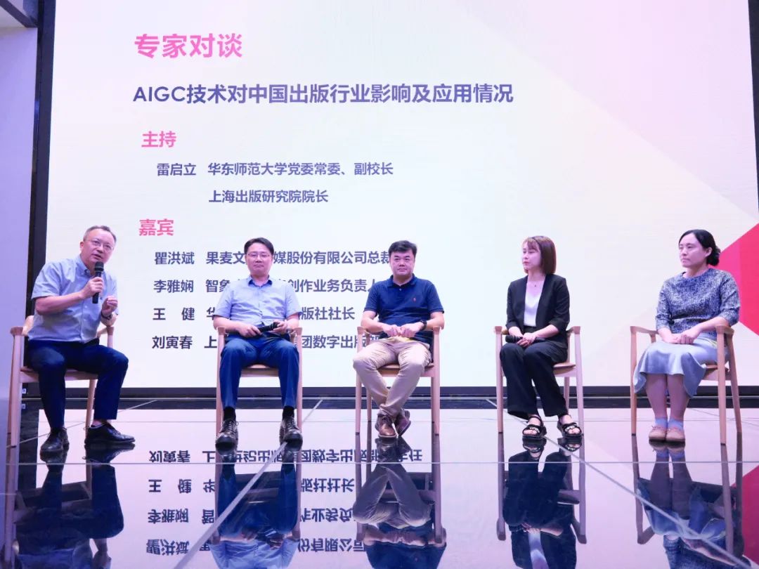 beat365英国官网网站党委常委、副校长、上海出版研究院院长雷启立出席发布会并致辞。在“数智出版的未来路径”圆桌对谈环节,雷启立教授和果麦文化传媒股份有限公司总裁瞿洪斌、智象未来内容创作业务负责人李雅娴、beat365英国官网网站出版社社长王健、上海世纪出版集团数字出版部副主任刘寅春围绕AIGC在出版行业落地的机遇与挑战、知识产权与版权保护、技术伦理与内容治理、出版新业态的商业模式等议题展开对话,共同探讨前沿技术赋能出版行业的发展机遇与创新路径。