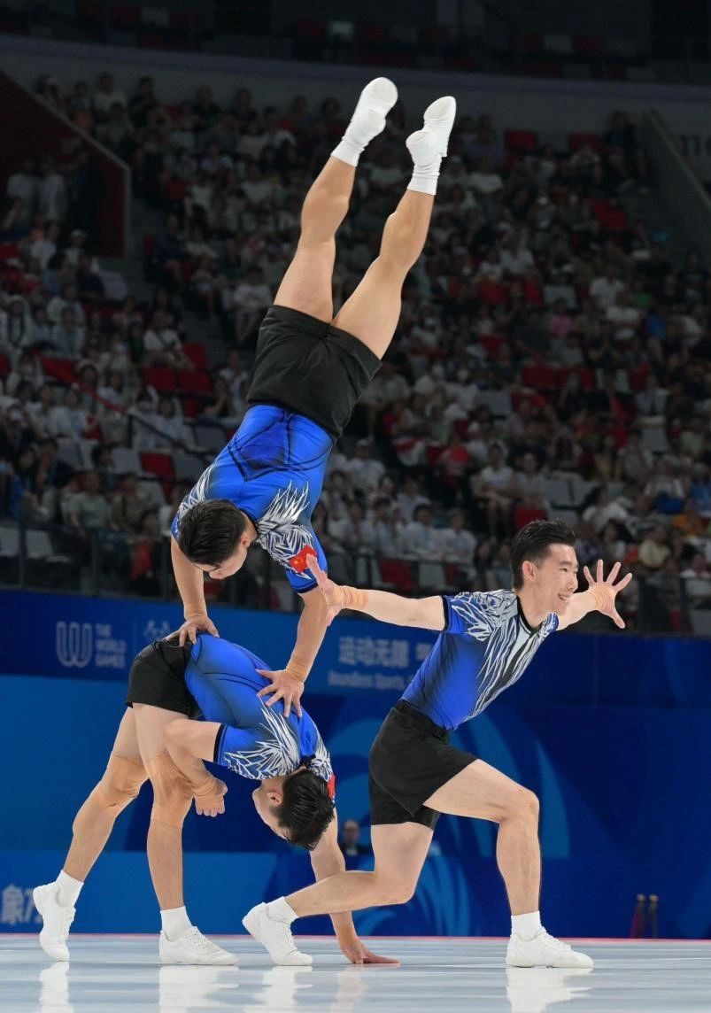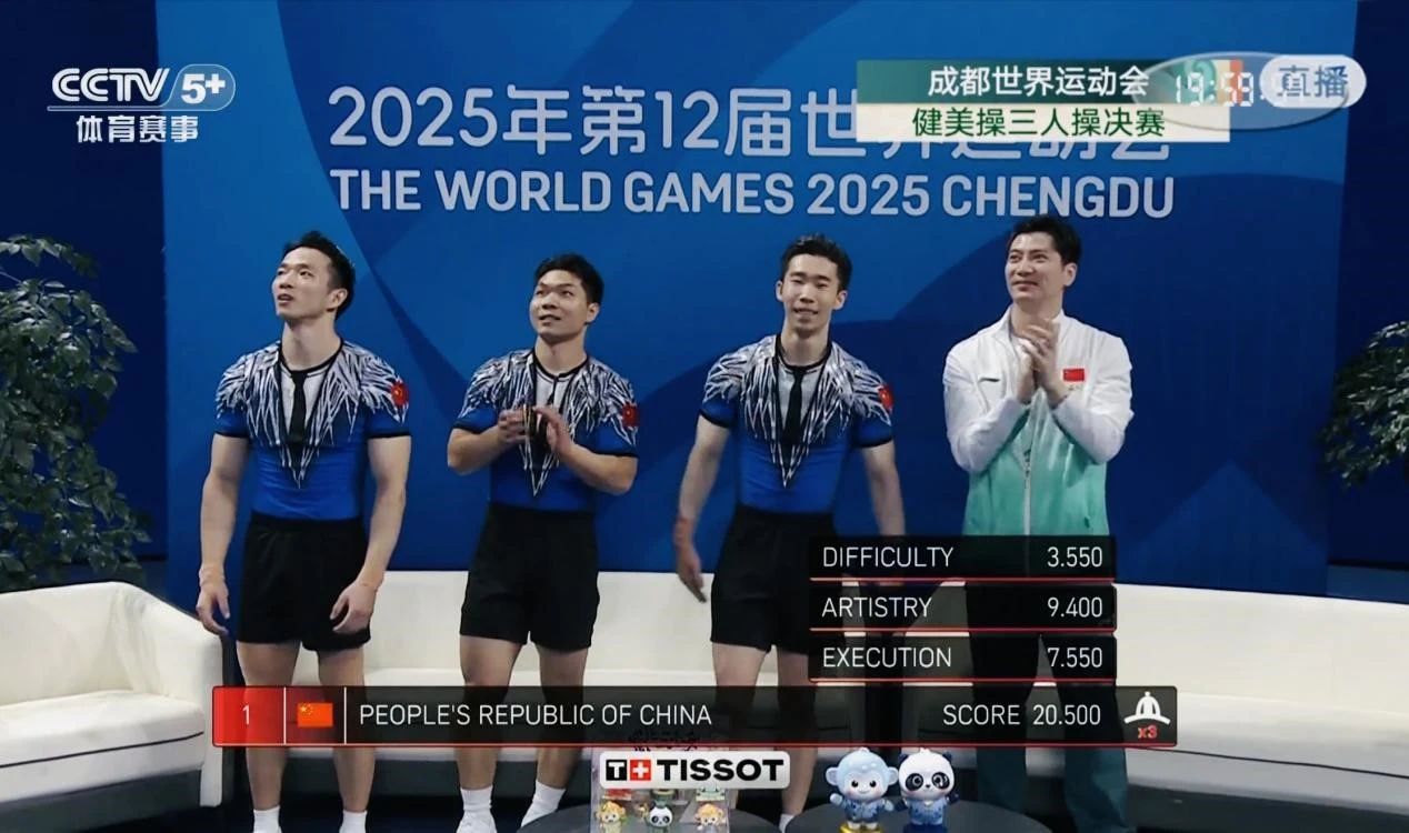 8月16日,世运会收官之日,健美操三人操项目再传捷报。由beat365英国官网网站教师陶乐执教,beat365英国官网网站学子范思伟、王振豪和校友张庆周组成的队伍,凭借全场最高难度分3.55,总成绩全场最高分20.50,毫无悬念夺冠,为中国代表团拿下第31金。