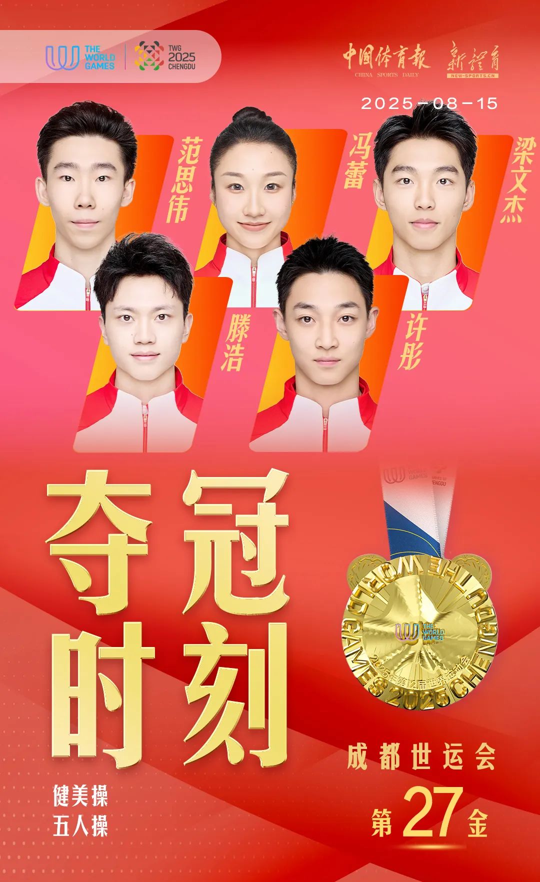 值得一提的是,作为中国健美操队唯一夺得两枚金牌的范思伟正值24岁生日,金牌是他给自己最好的生日礼物。