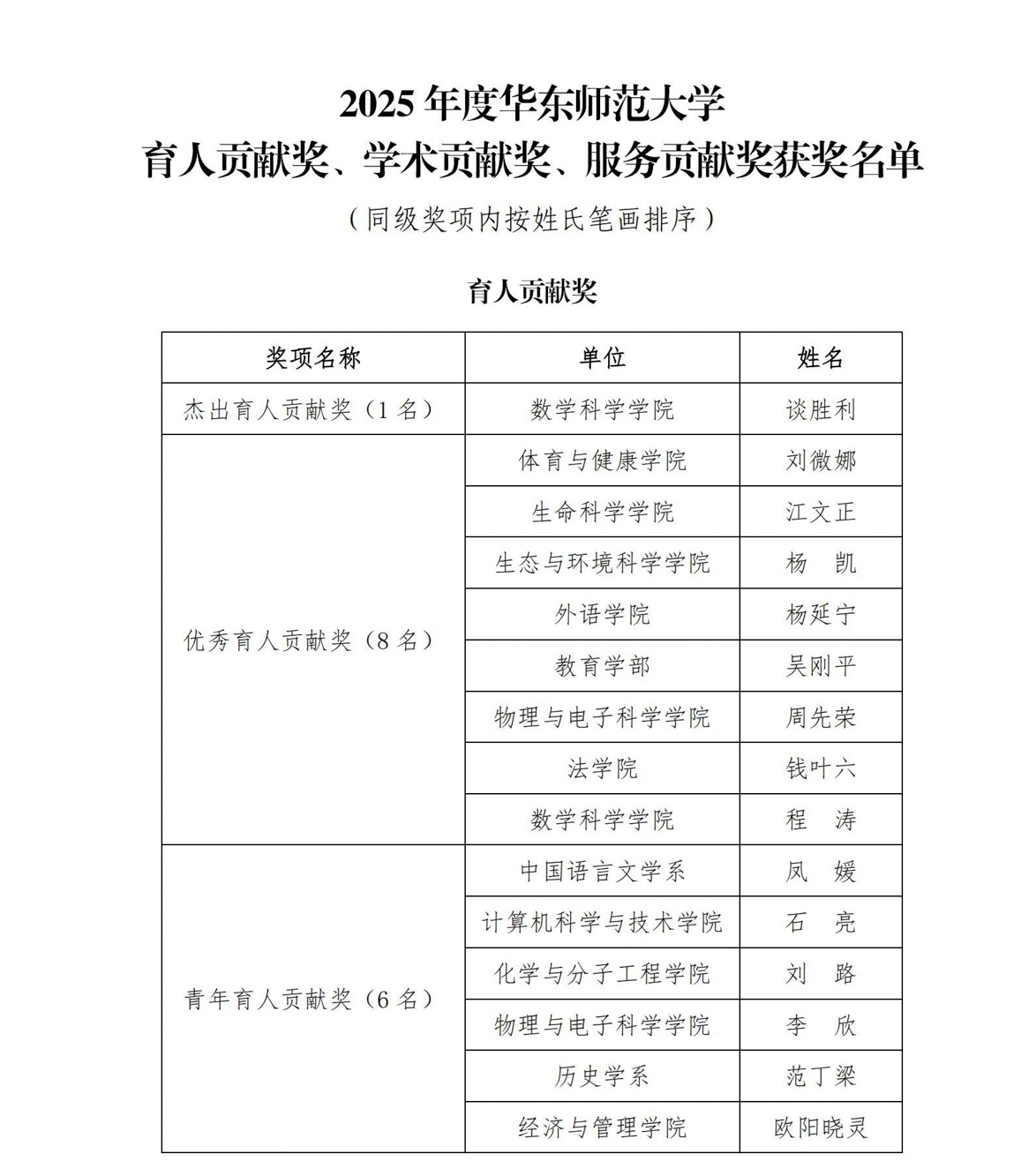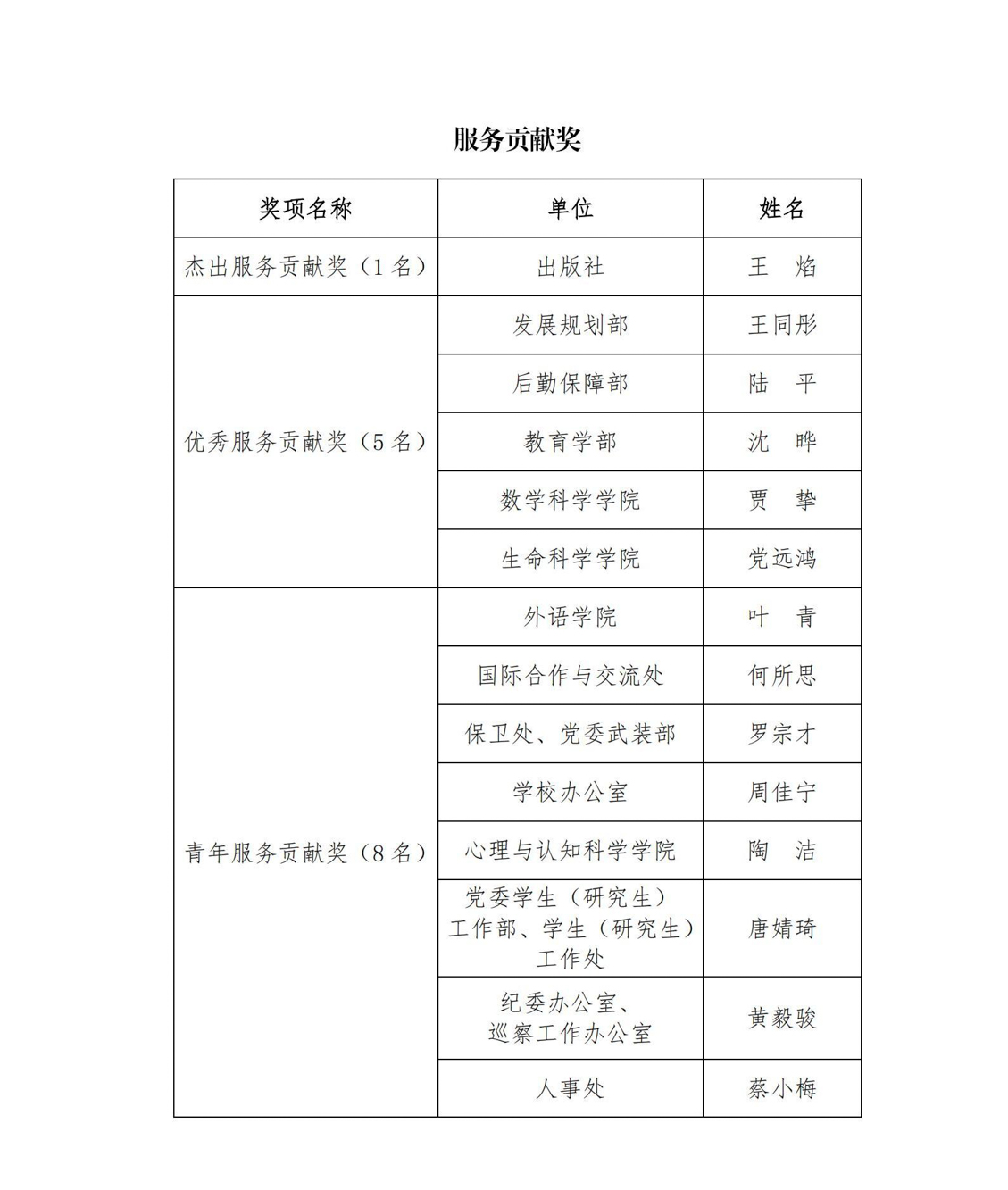杰出育人贡献奖、杰出学术贡献奖、杰出服务贡献奖