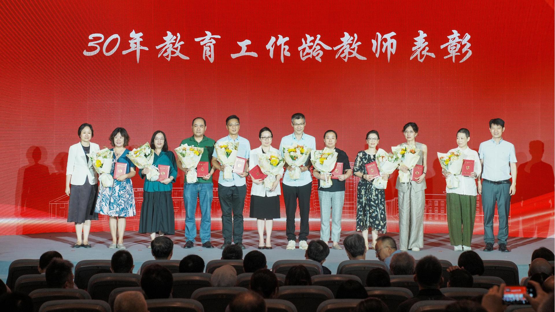 主题活动上,学校对从事教育工作满30年的教师进行了表彰,向71位坚守教育岗位30载的教师致敬。