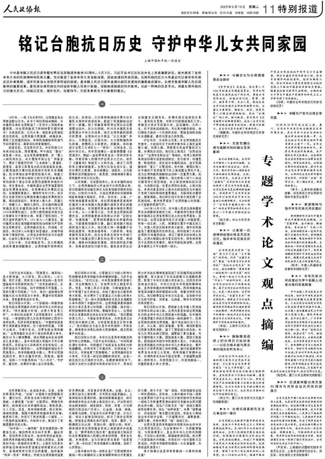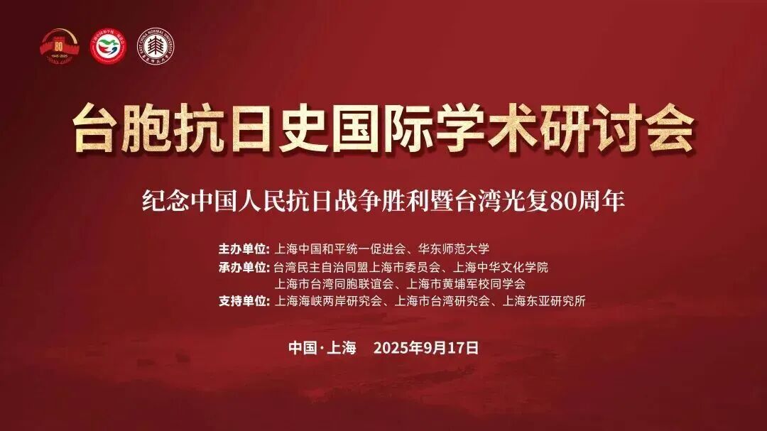 学习贯彻习近平总书记在纪念中国人民抗日战争暨世界反法西斯战争胜利80周年大会上的重要讲话精神,深入研究全民族抗战及台胞抗日历史,阐释中国人民抗日战争胜利和台湾光复的历史意义,9月17日下午,“台胞抗日史国际学术研讨会——纪念中国人民抗日战争胜利暨台湾光复80周年”在上海科学会堂举行。