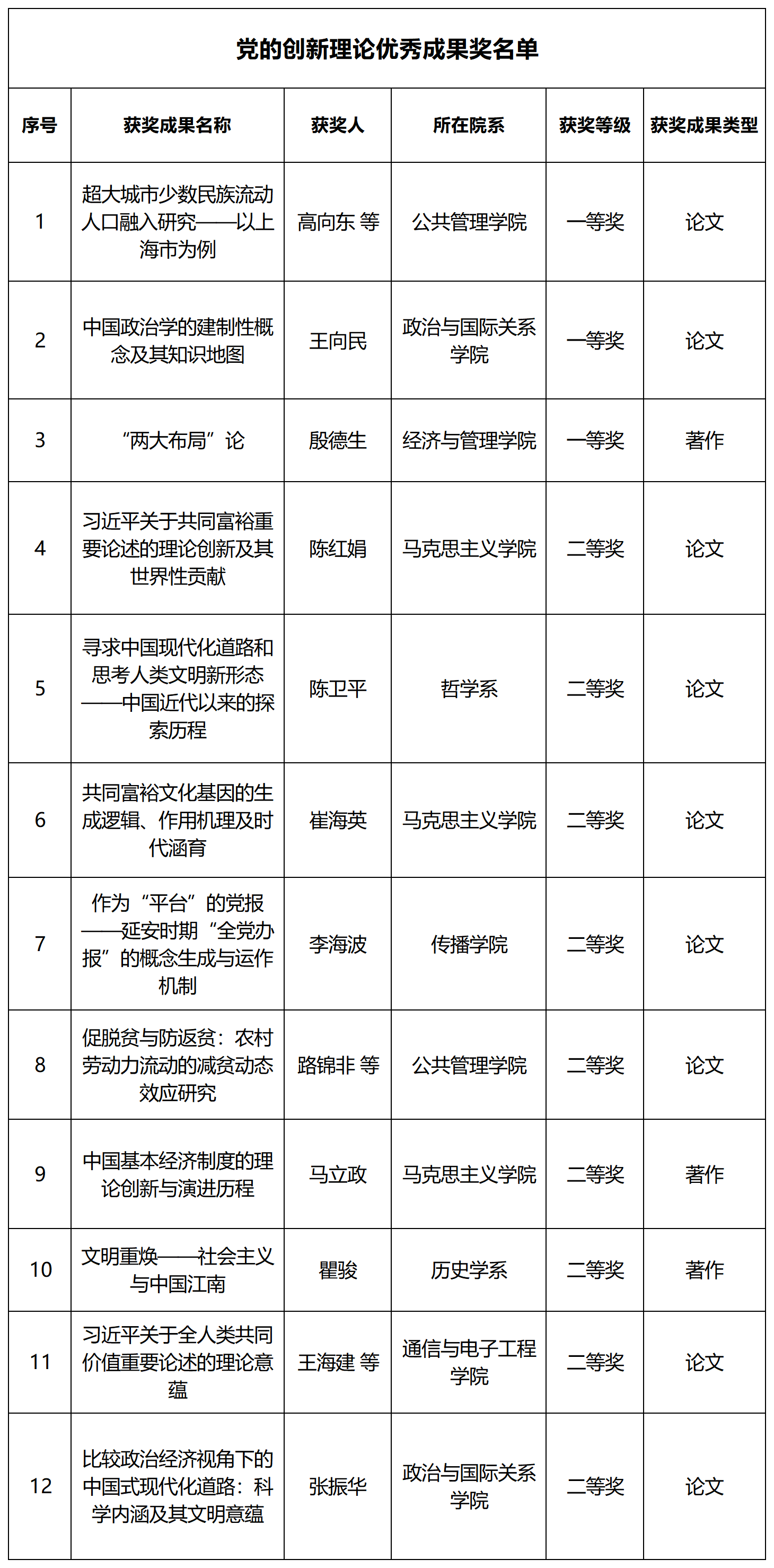 马克思主义理论学科获奖成果,聚焦“党的创新理论阐释与传播”,进一步回应“马克思主义如何中国化”的核心问题,为党的创新理论“飞入寻常百姓家”提供学术支撑,直接服务上海“党的创新理论研究高地”建设。
