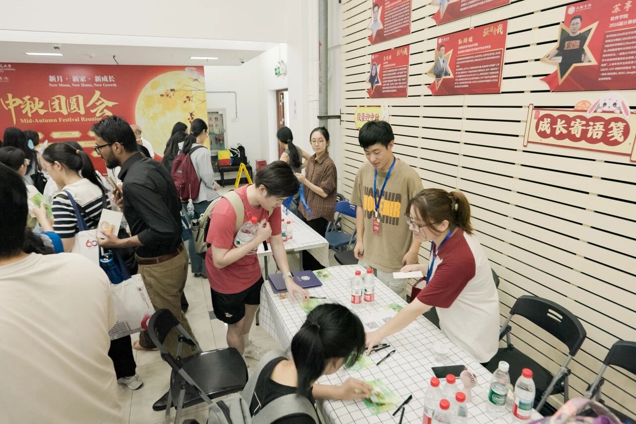 在闵行、普陀两校区,师生们参与猜灯谜、投壶、糖画、手作月饼、花灯、漆扇、香牌等传统文化活动,共享中秋团圆之乐。