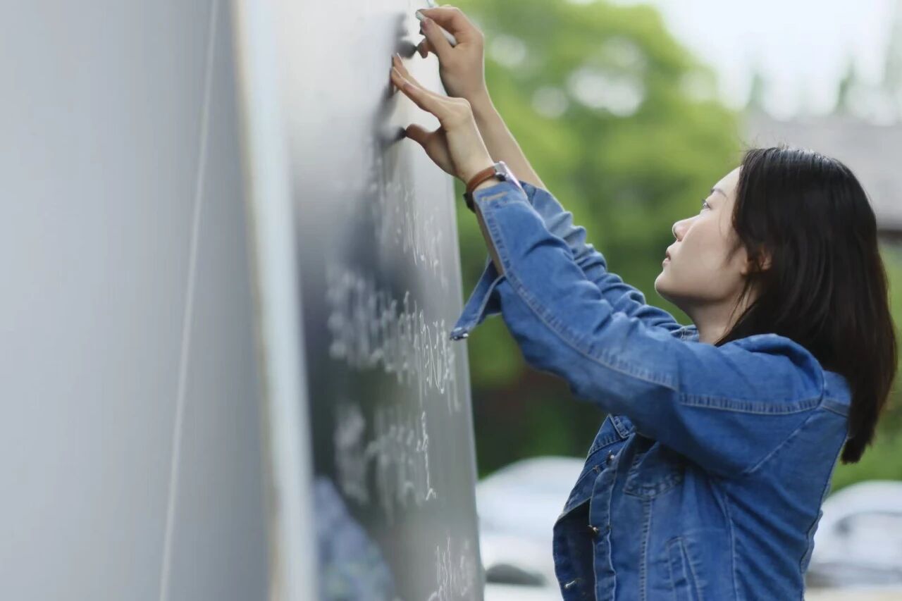 2022级教育学部教育管理学专业的张乐初遇小黑板,是在一个寻常的下午。从图书馆走出,随意抬头一瞥,却被黑板上的一句话拽住了脚步——“闷声耕作,春天看得见。”悄然间的共鸣,给她一种奇妙的触动。自那以后,每次经过图书馆,她都习惯性地抬头寻找黑板上的新句子,仿佛与它有了一场无声的约定。“渐渐地,我也想在这块小小的黑板上留下些什么,传递温暖和力量。很开心的是,在联系图书馆老师后,被非常热情地邀请加入了书写队伍。”