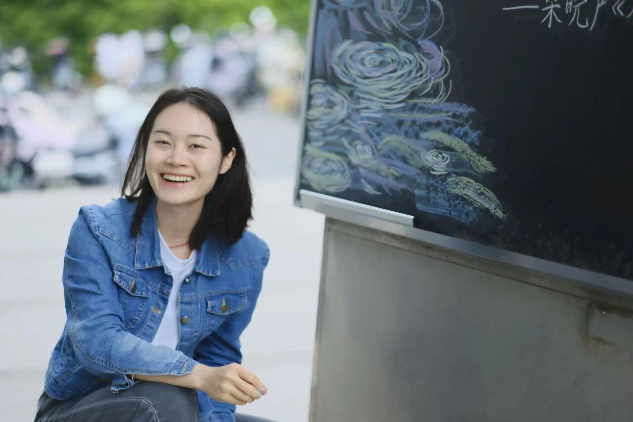 2023级数学科学学院学科教学(数学)专业的彭如意是团队的主力,毕业前她用心写下了最后一期小黑板的内容。初入校园时,她曾因学业与社交的压力陷入困境,是小黑板上的文字一次次给予她力量。一次偶然为同学创作锦鲤插画获得成功的经历,让她重拾自信并加入“板书侠”。她苦练粉笔字和叠色画法,作品广受好评。小黑板见证了她从怯懦到自信的蜕变:“它是我传递温暖的平台,更是自我成长的见证。”