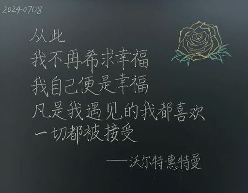 这块伫立在图书馆门前的小黑板,早已超越了其物理形态。它记得你晨读时的哈欠,听懂你夜归时的叹息。无论你带着期许还是忐忑前行,别忘了偶尔在图书馆门前稍作停留。看看这块“会说话”的小黑板。它或许不能给你确切的答案,但那粉笔的温度、文字的力量,定会化作拥抱未知的勇气。