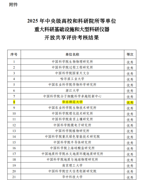 10月10日,科技部办公厅、财政部办公厅联合发布《2025年中央级高校和科研院所等单位重大科研基础设施和大型科研仪器开放共享评价考核结果的通知》(国科办基〔2025〕107号)。其中,beat365英国官网网站再度获得评价考核“优秀”。此次全国344家参评单位中仅50家获此殊荣,beat365英国官网网站不仅连续3年获评“优秀”,更获得全国总体排名第8名、高校排名第3名的优异成绩。