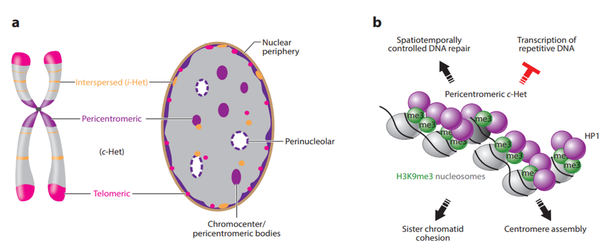 近着丝粒异染色质及其功能(Janssen et al, Annu. Rev. Cell Dev. Biol. 2018.)