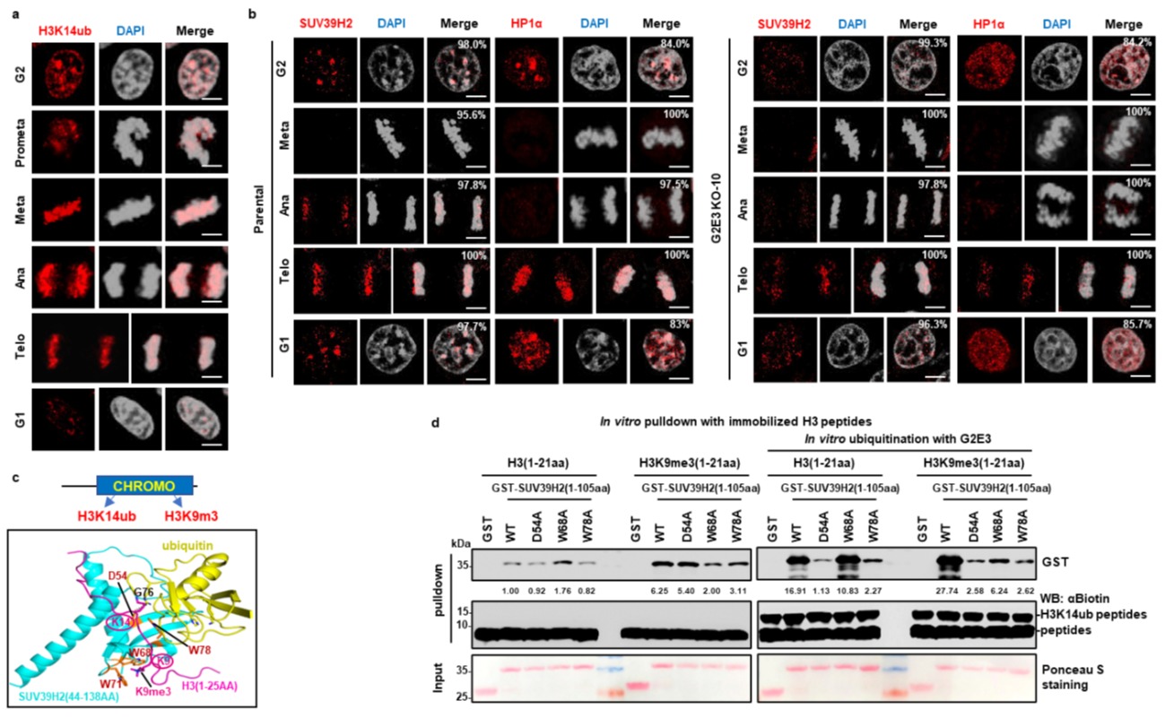 SUV39H1/2通过Chromo结构域同时识别结合H3K14ub和H3K9me3而被招募到近着丝粒异染色质